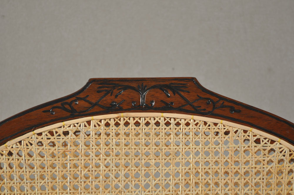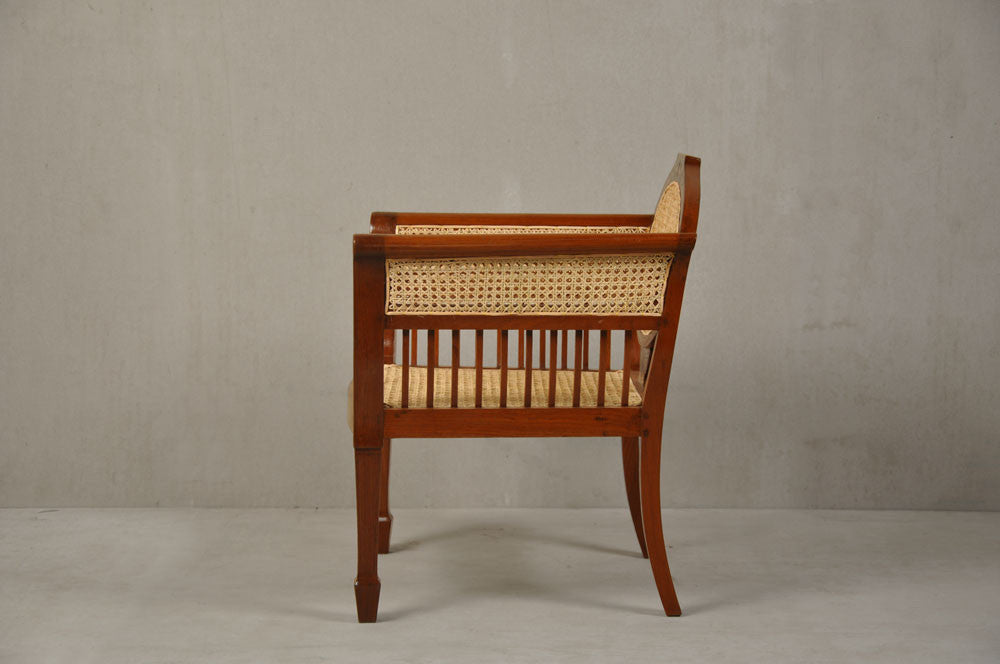 REPRODUCTION This piece is reproduced in teakwood and finished with Natural polish and a protective coat of clear wax. The caning weave is a '7 step' pattern using high quality cane from Andamans.