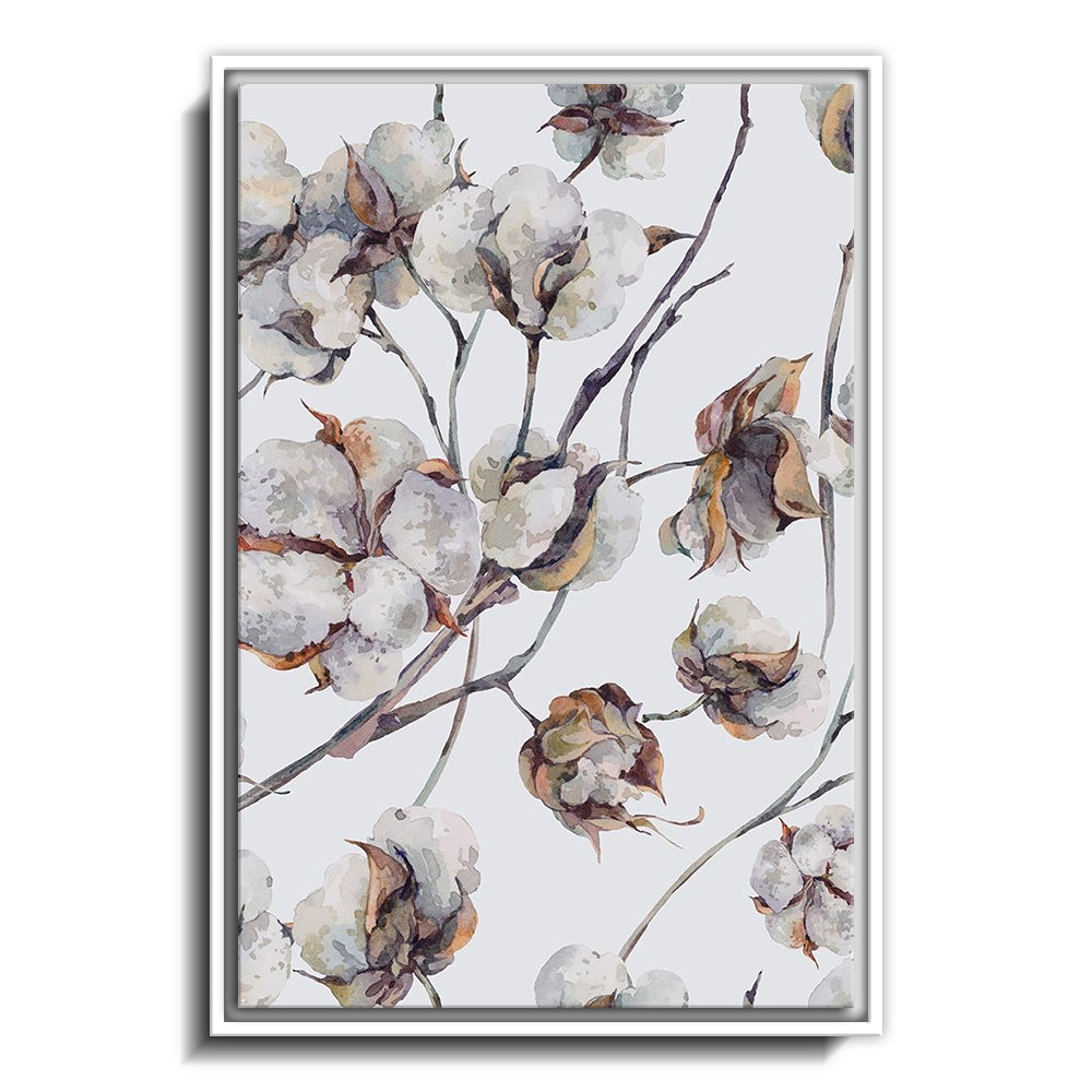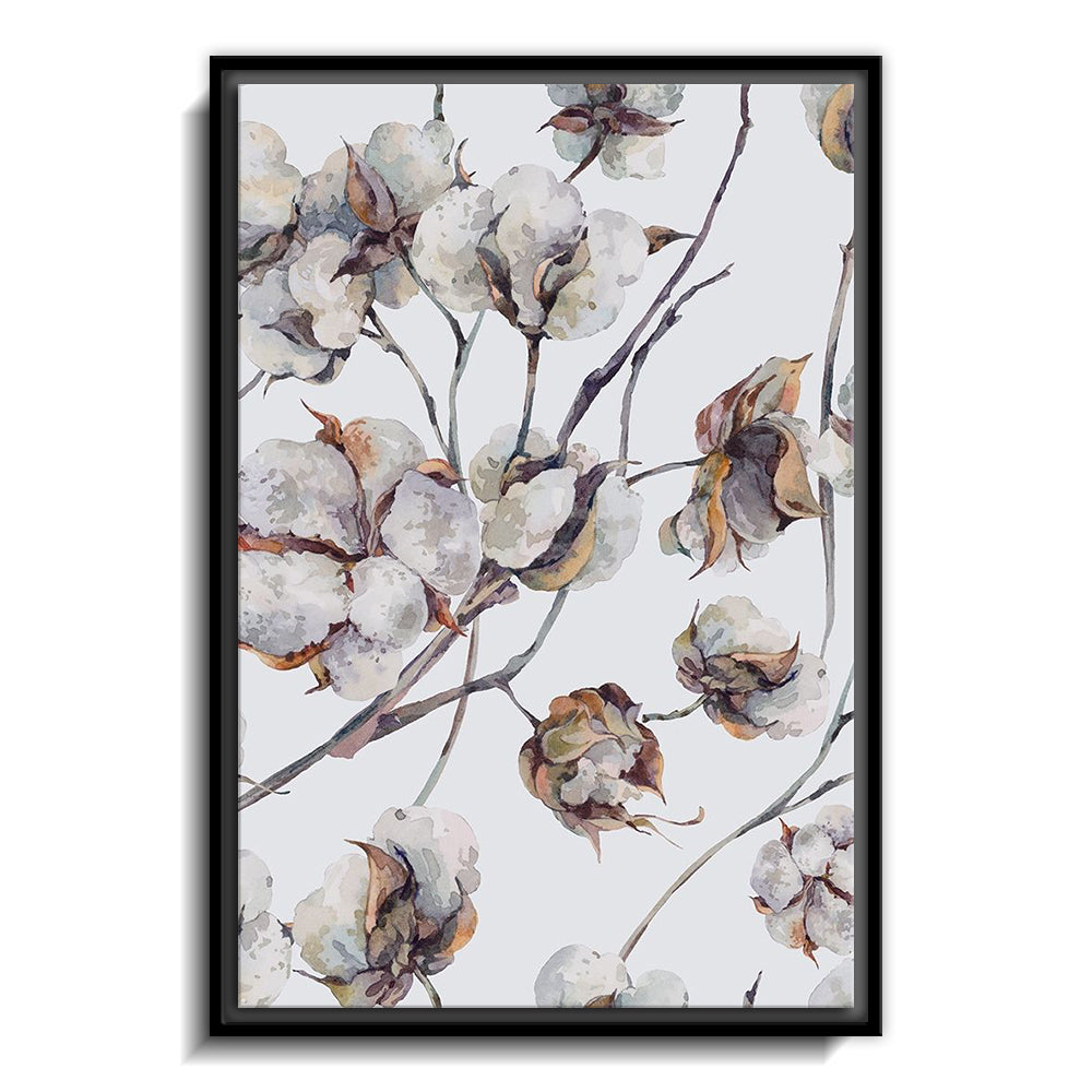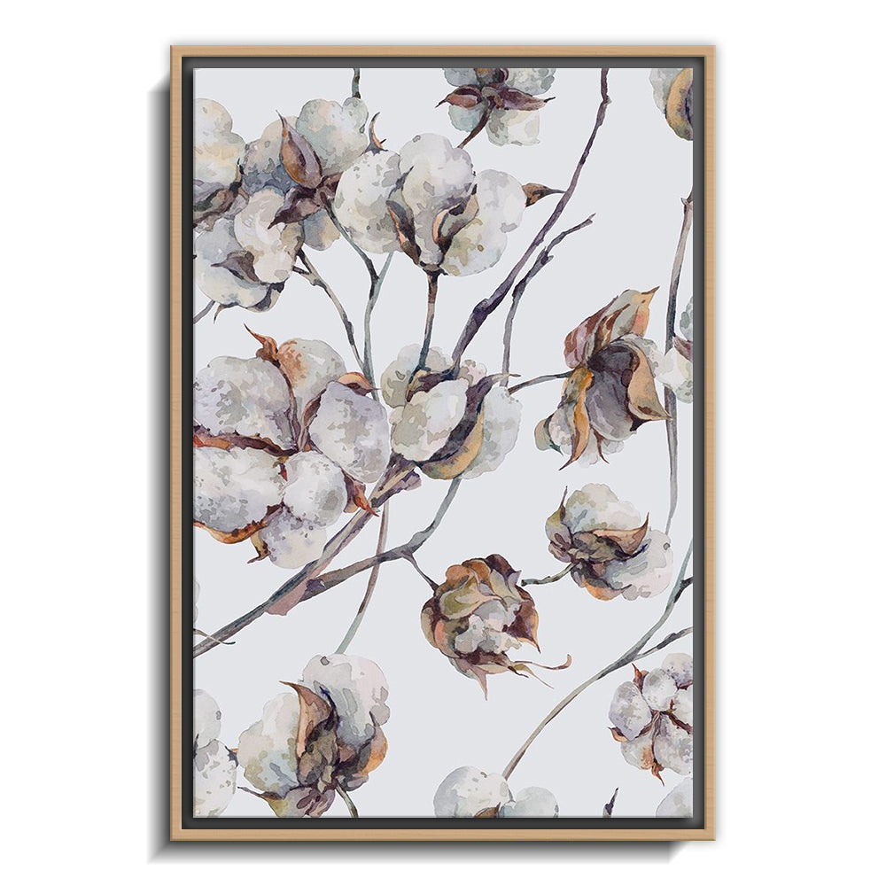 The canvas is wrapped and stretched similar to a gallery wrap and then mounted inside a wooden frame, leaving a small "gap", to create the illusion that the canvas is floating within the frame.