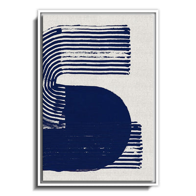 The canvas is wrapped and stretched similar to a gallery wrap and then mounted inside a wooden frame, leaving a small "gap", to create the illusion that the canvas is floating within the frame.