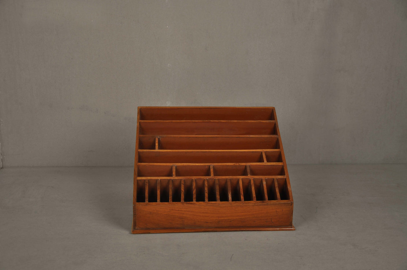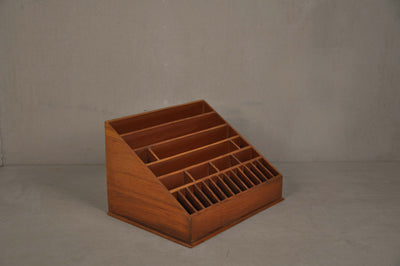 DESCRIPTION Desk Stationery Holder II can be used on a table top at home or office to hold A4 paper, letters, envelopes, pens/ markers etc. Can be used at a reception table to hold magazines and journals. The depth of the slots varies from 3" to 10" making it possible to hold a variety of items.