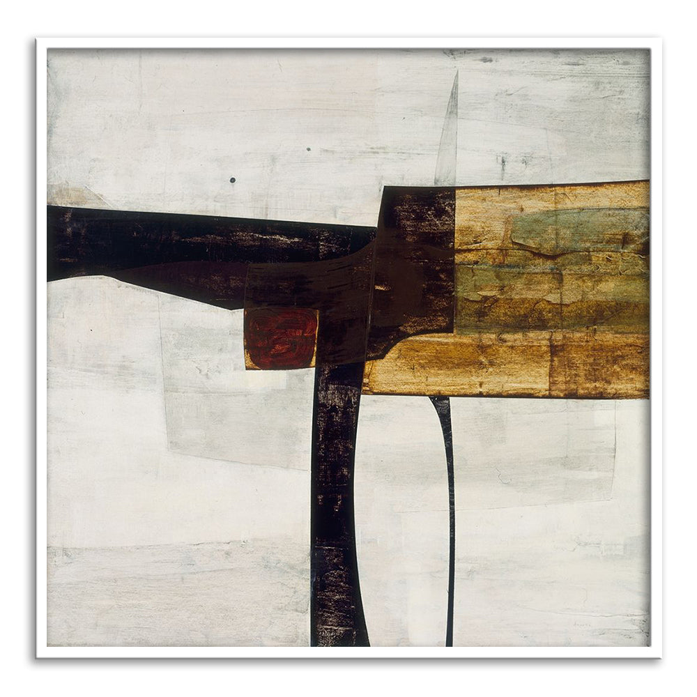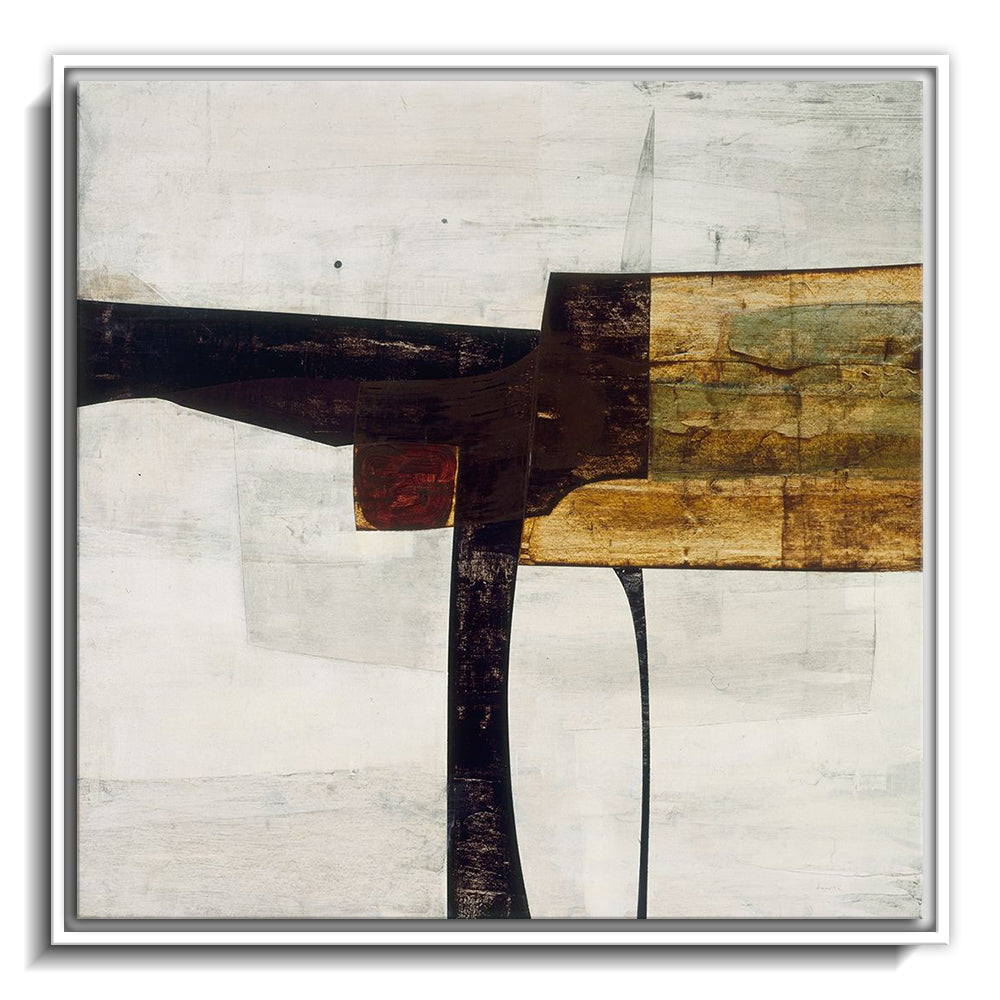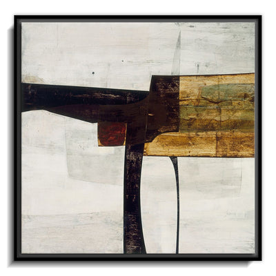 The canvas is wrapped and stretched similar to a gallery wrap and then mounted inside a wooden frame, leaving a small "gap", to create the illusion that the canvas is floating within the frame.