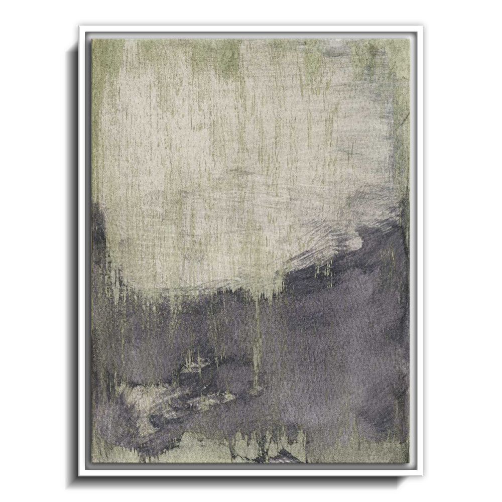 The canvas is wrapped and stretched similar to a gallery wrap and then mounted inside a wooden frame, leaving a small "gap", to create the illusion that the canvas is floating within the frame.