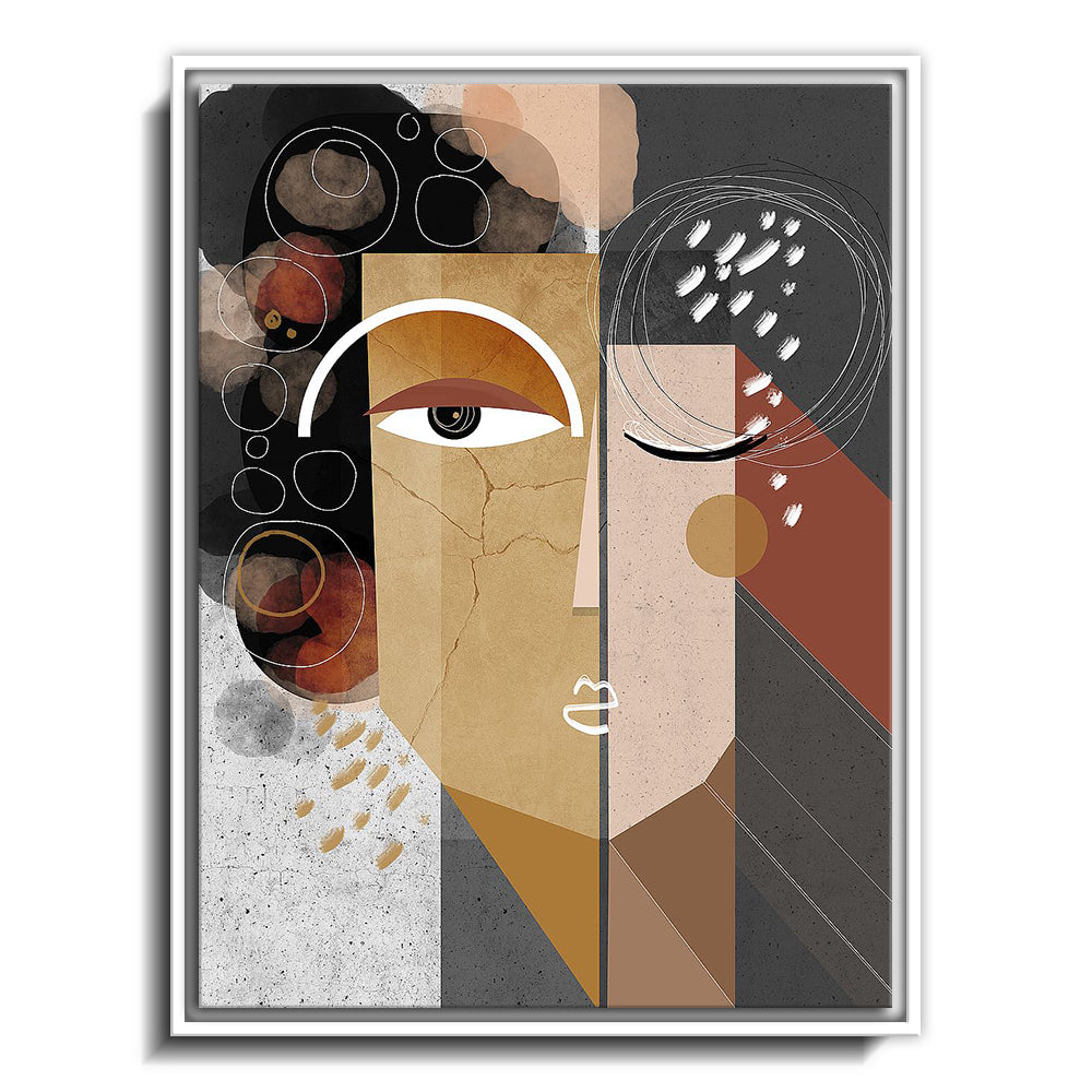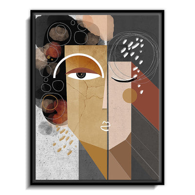 The canvas is wrapped and stretched similar to a gallery wrap and then mounted inside a wooden frame, leaving a small "gap", to create the illusion that the canvas is floating within the frame.