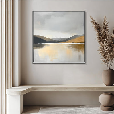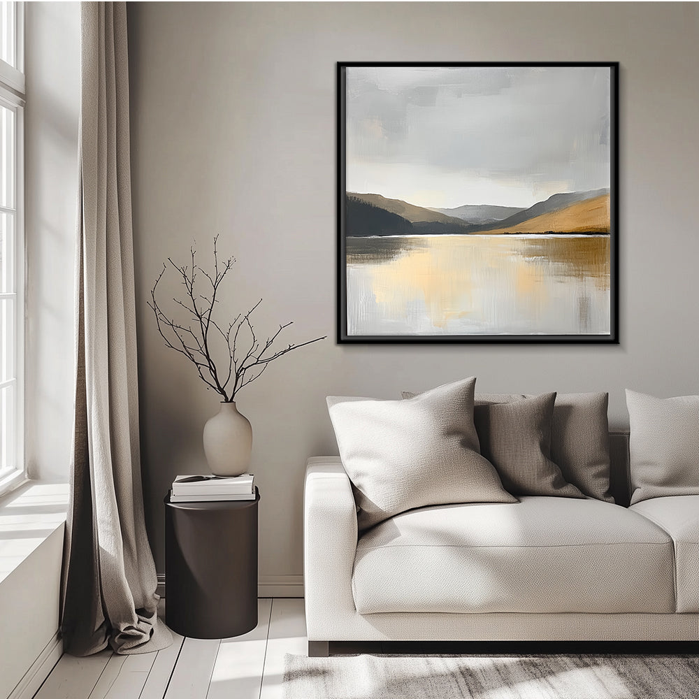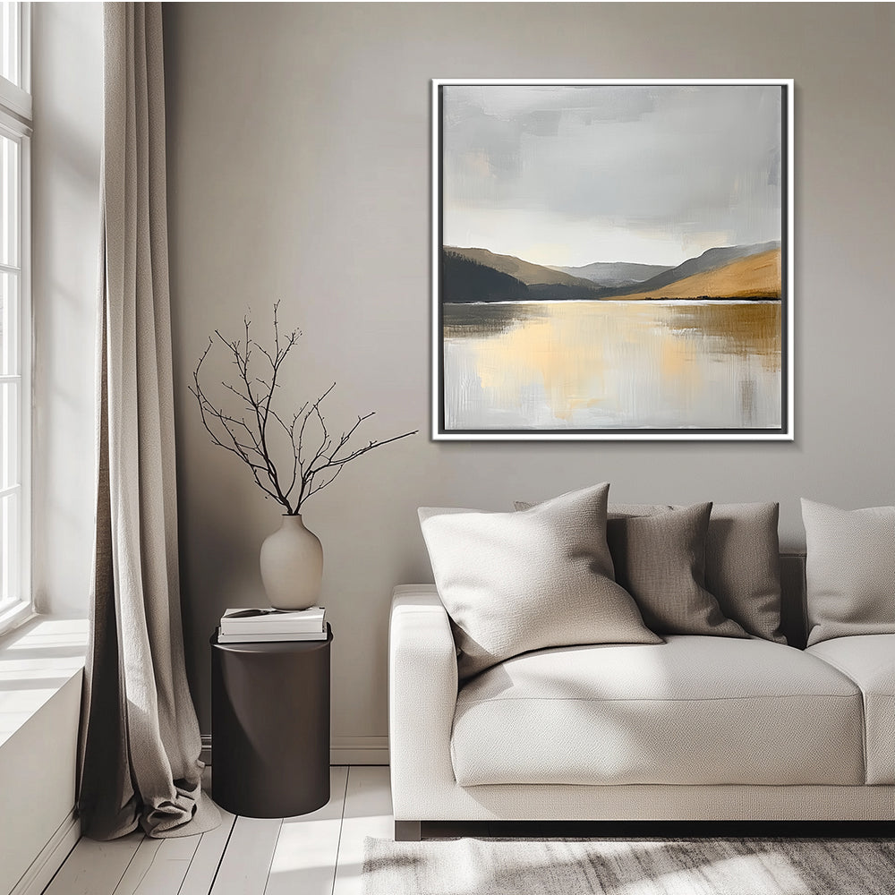 The canvas is wrapped and stretched similar to a gallery wrap and then mounted inside a wooden frame, leaving a small "gap", to create the illusion that the canvas is floating within the frame. Price: $$$