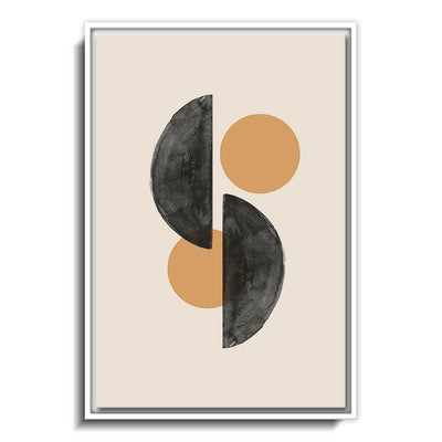 The canvas is wrapped and stretched similar to a gallery wrap and then mounted inside a wooden frame, leaving a small "gap", to create the illusion that the canvas is floating within the frame.