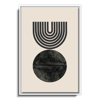 The canvas is wrapped and stretched similar to a gallery wrap and then mounted inside a wooden frame, leaving a small "gap", to create the illusion that the canvas is floating within the frame.