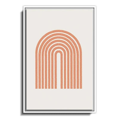 The canvas is wrapped and stretched similar to a gallery wrap and then mounted inside a wooden frame, leaving a small "gap", to create the illusion that the canvas is floating within the frame.