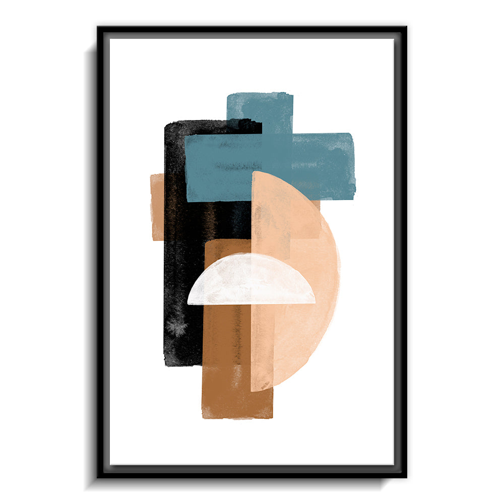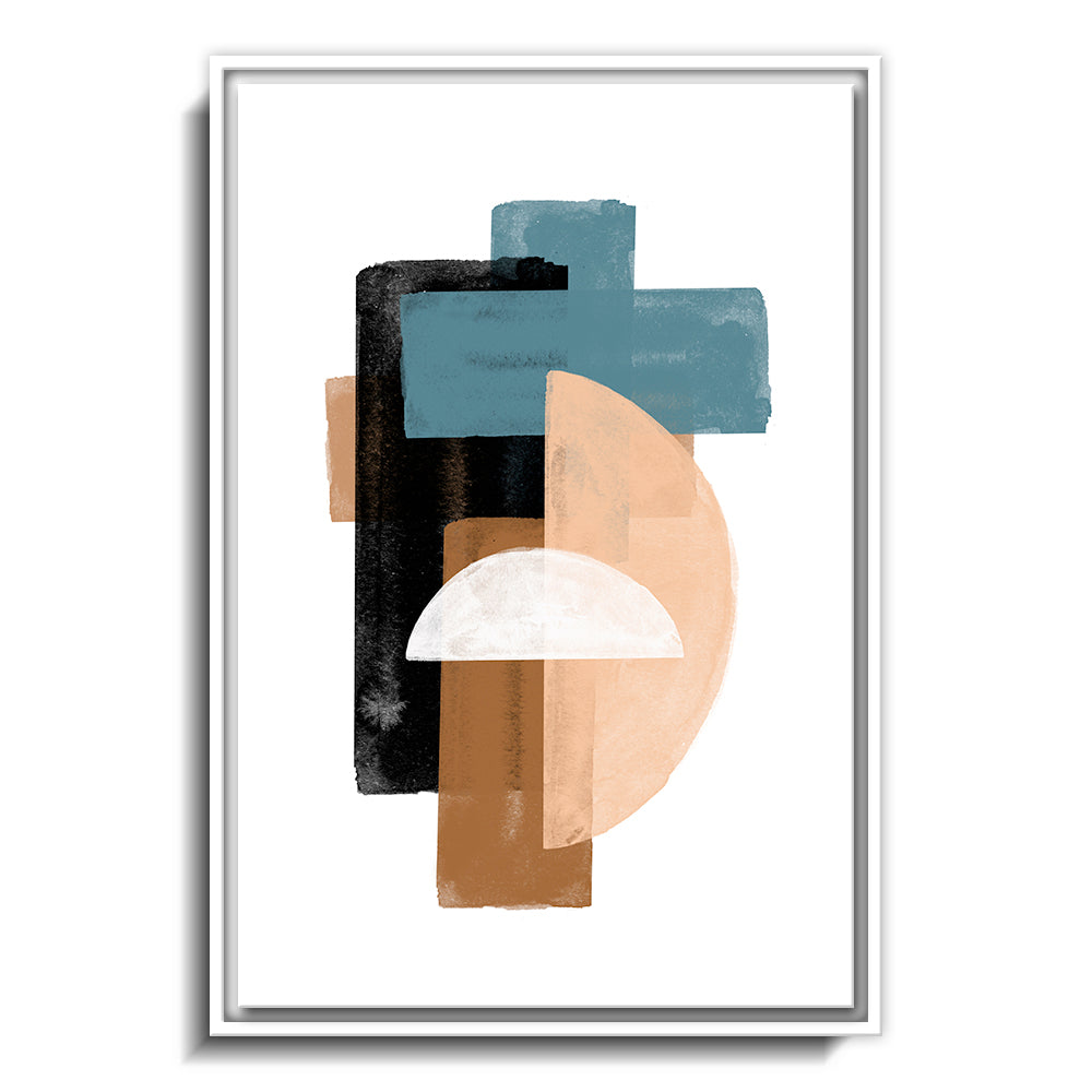 The canvas is wrapped and stretched similar to a gallery wrap and then mounted inside a wooden frame, leaving a small "gap", to create the illusion that the canvas is floating within the frame.