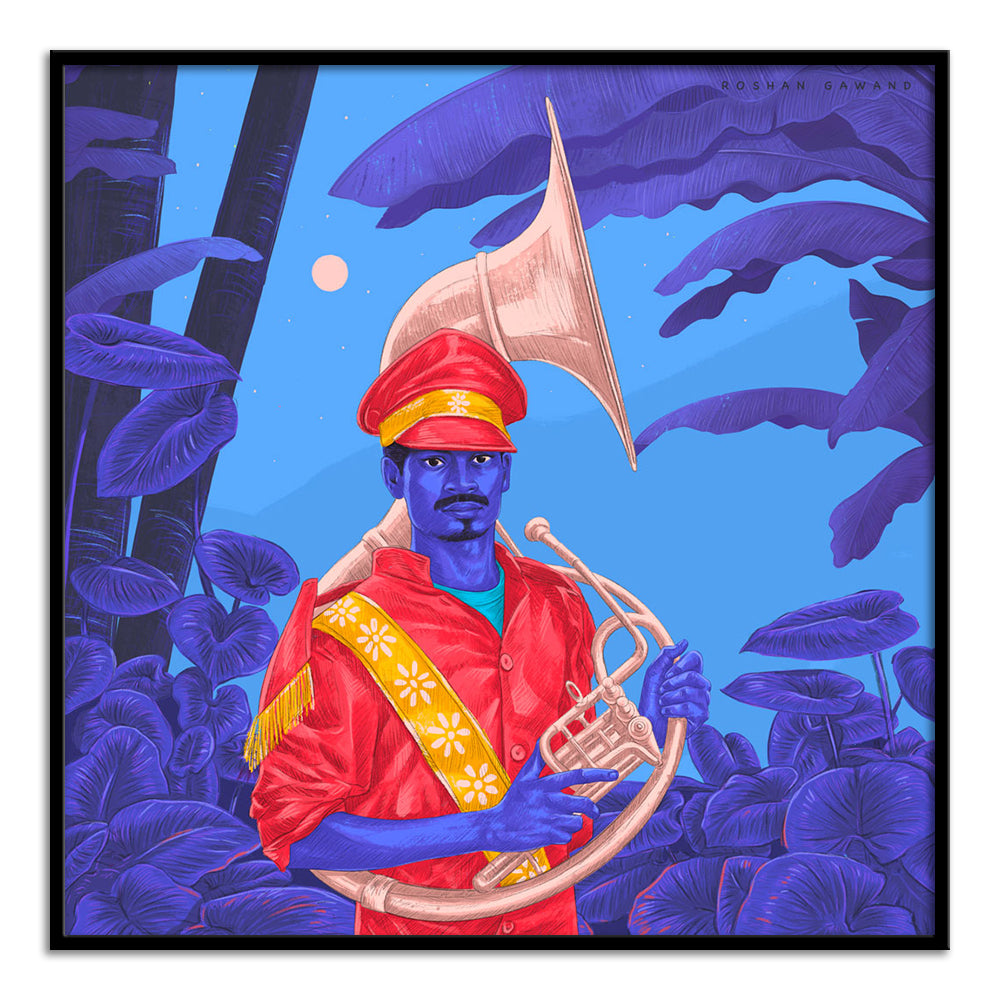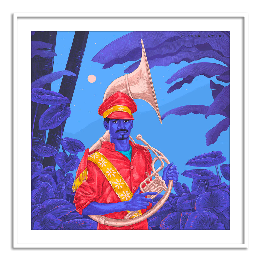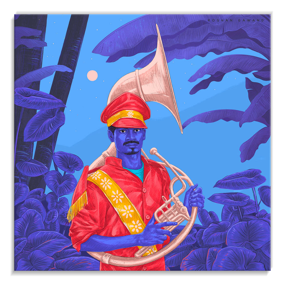 Roshan Gawand is a Mumbai based artist and a graduate of the L S Raheja School of Art. His work is deeply influenced by village life and merges Indian culture, portraits & elements in nature.