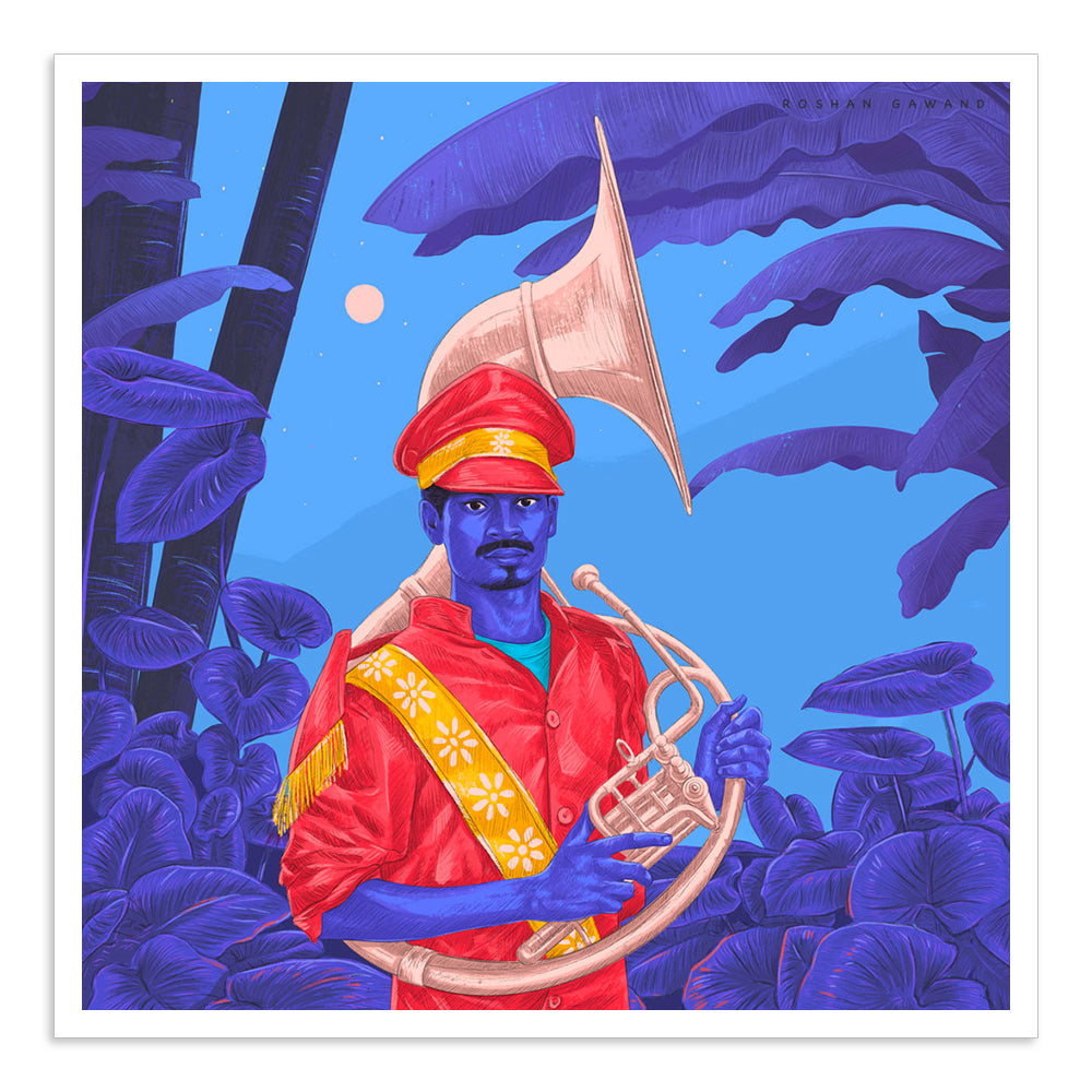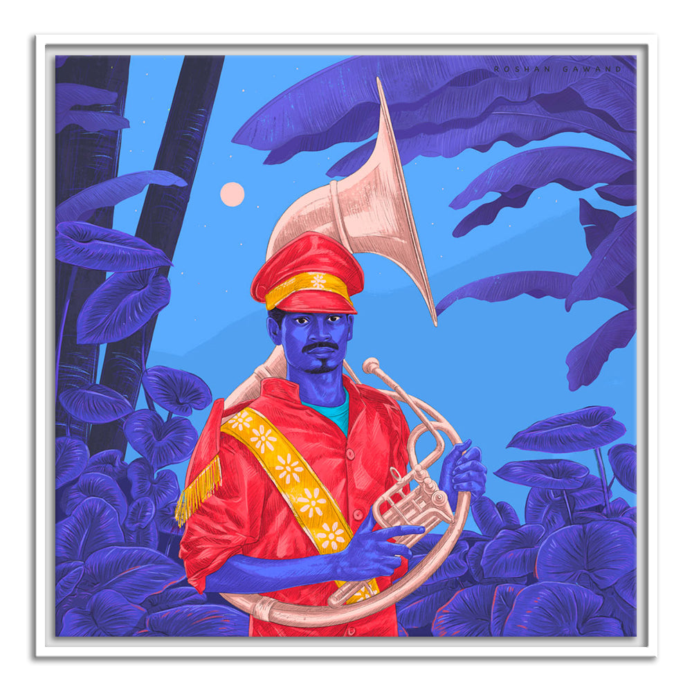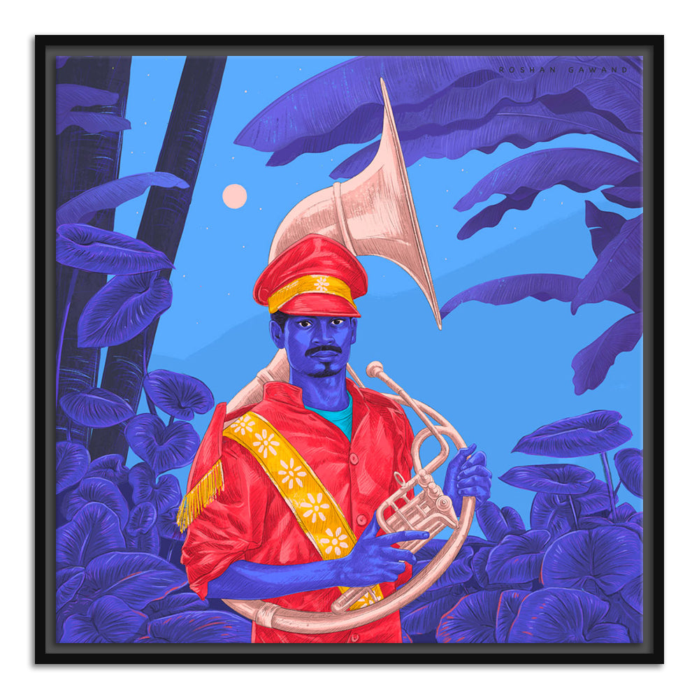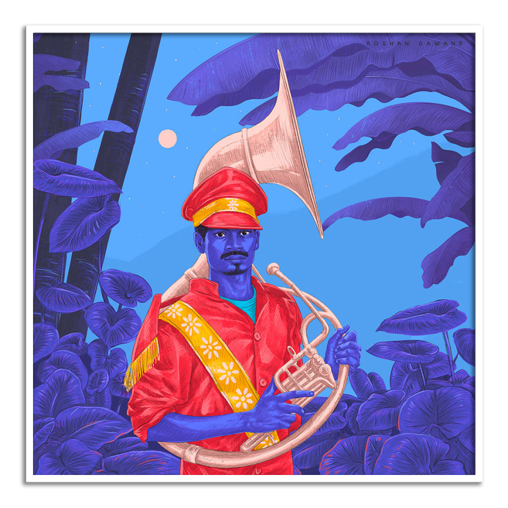 Roshan Gawand is a Mumbai based artist and a graduate of the L S Raheja School of Art. His work is deeply influenced by village life and merges Indian culture, portraits & elements in nature.