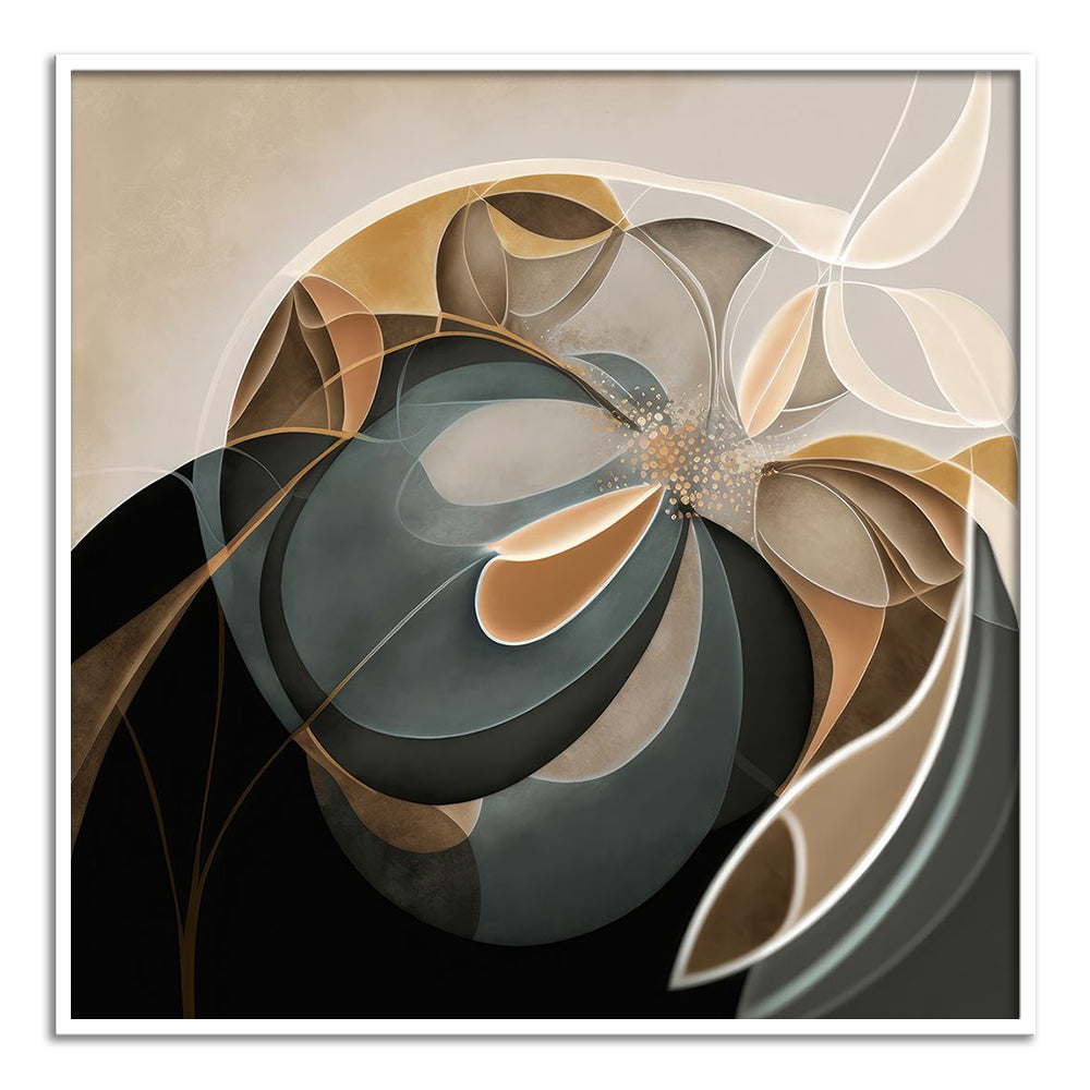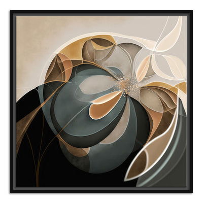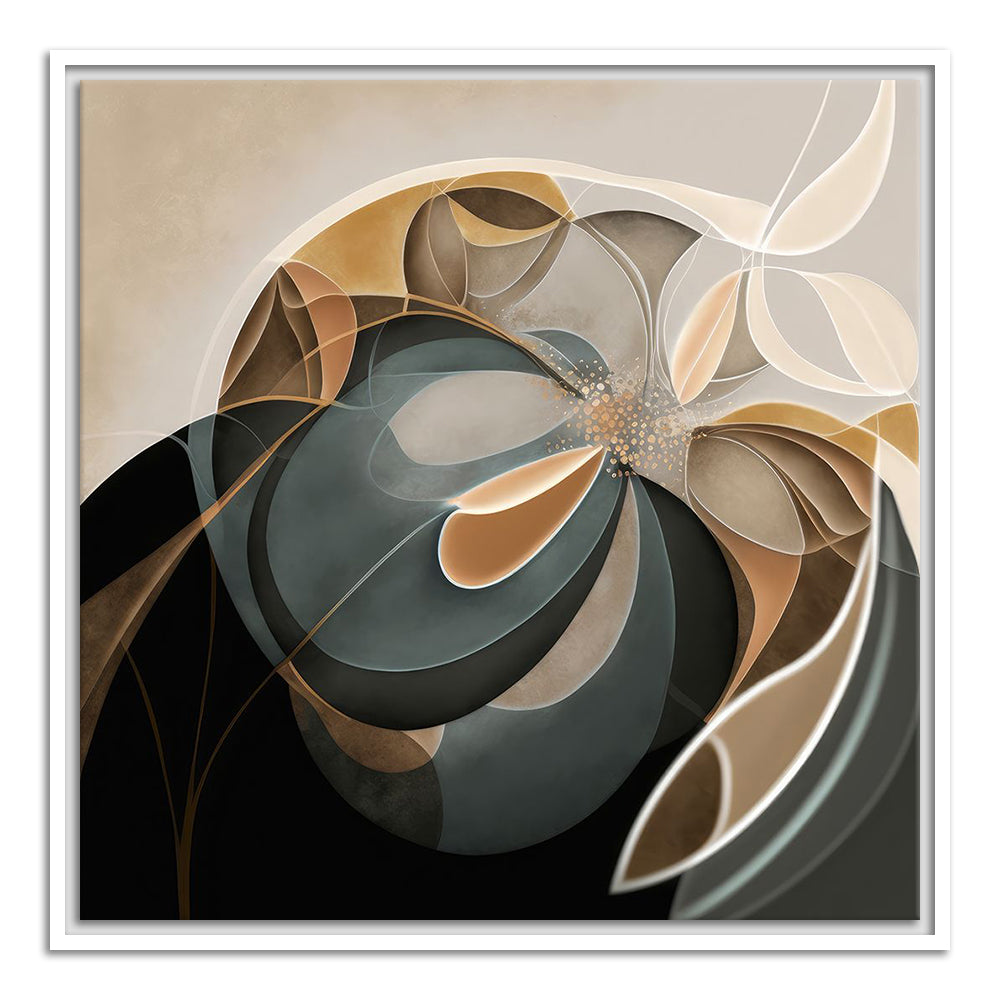 The canvas is wrapped and stretched similar to a gallery wrap and then mounted inside a wooden frame, leaving a small "gap", to create the illusion that the canvas is floating within the frame.