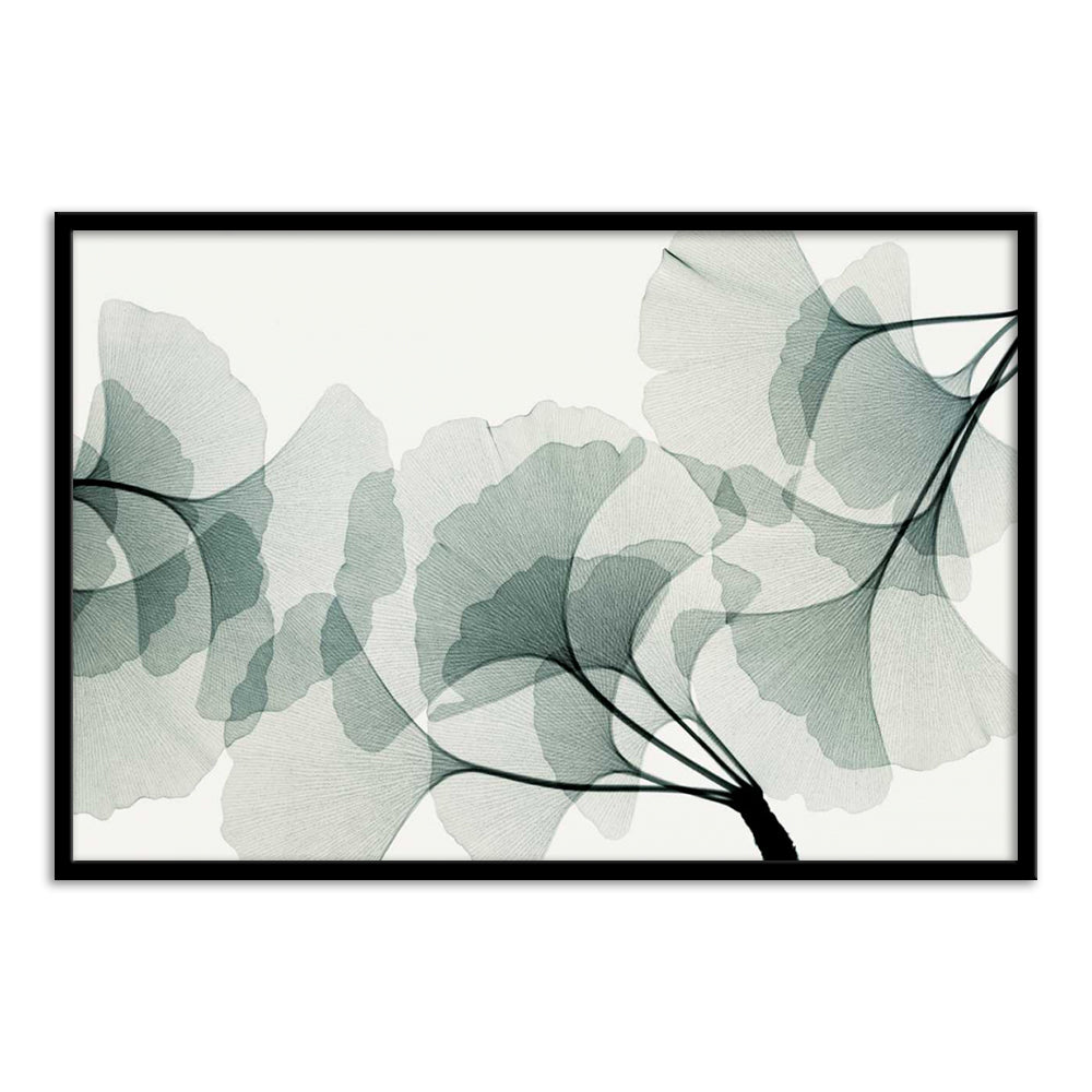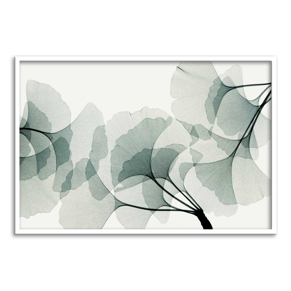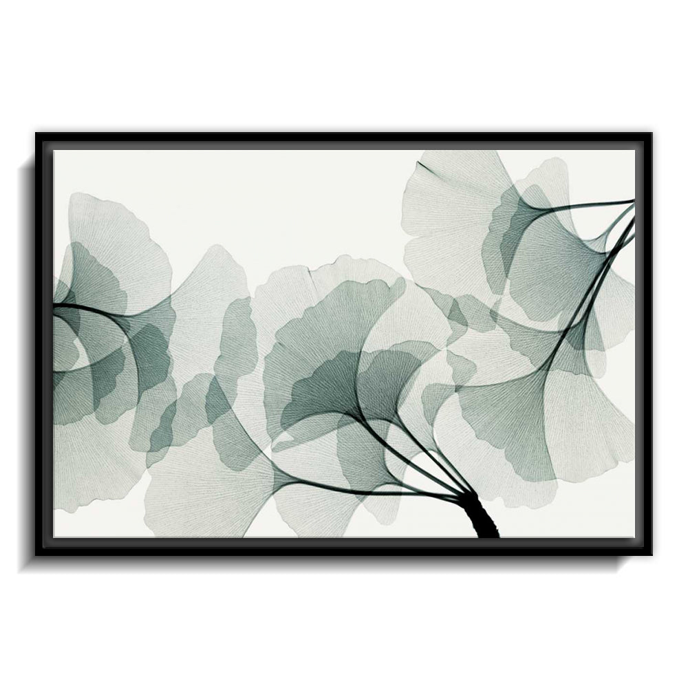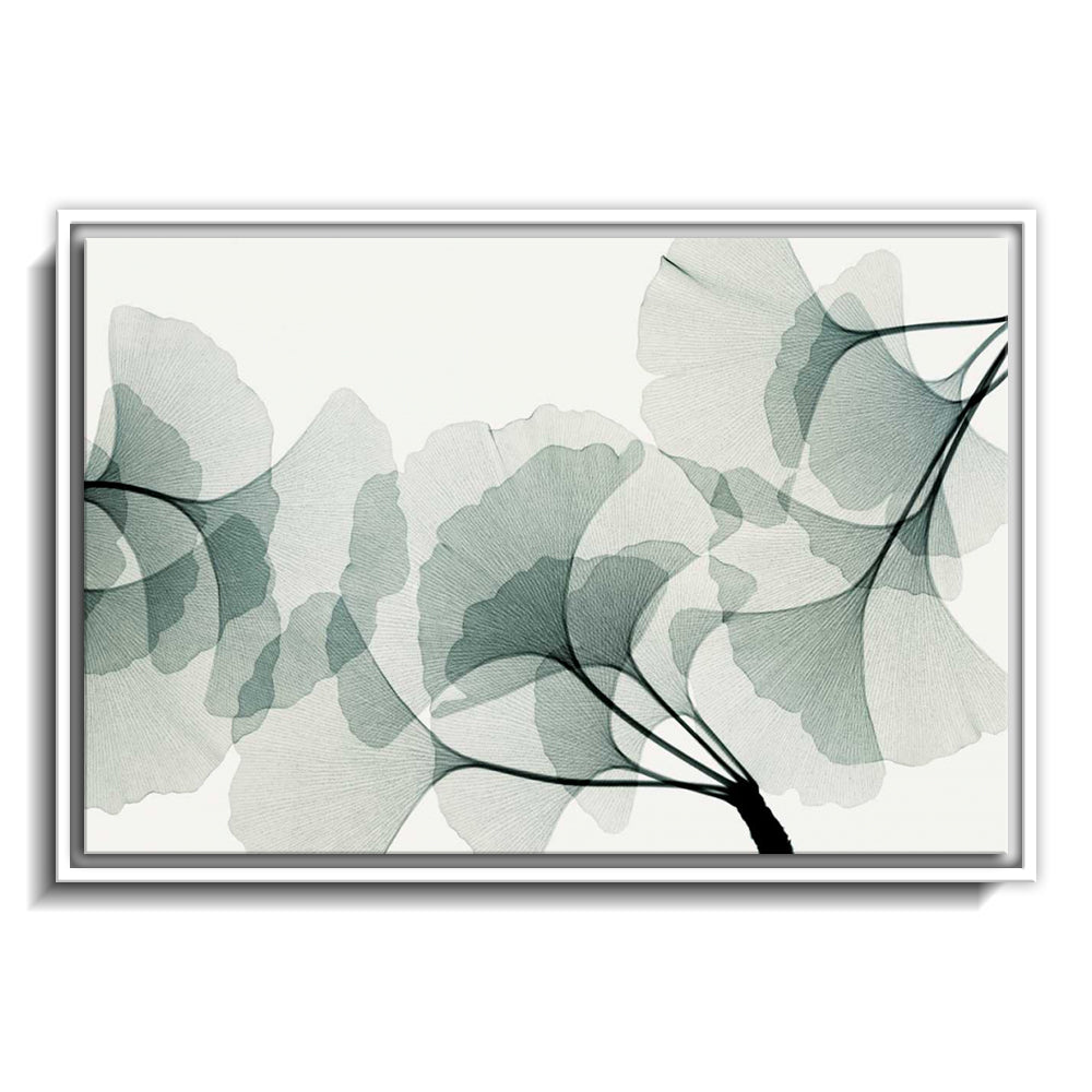 The canvas is wrapped and stretched similar to a gallery wrap and then mounted inside a wooden frame, leaving a small "gap", to create the illusion that the canvas is floating within the frame.