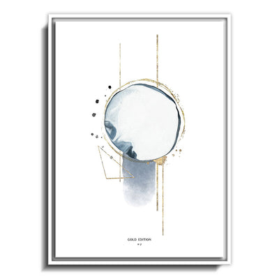 The canvas is wrapped and stretched similar to a gallery wrap and then mounted inside a wooden frame, leaving a small "gap", to create the illusion that the canvas is floating within the frame.
