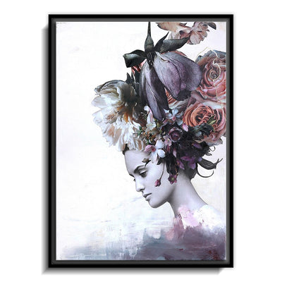 The canvas is wrapped and stretched similar to a gallery wrap and then mounted inside a wooden frame, leaving a small "gap", to create the illusion that the canvas is floating within the frame.