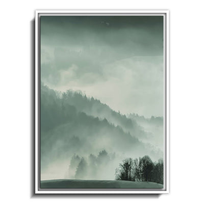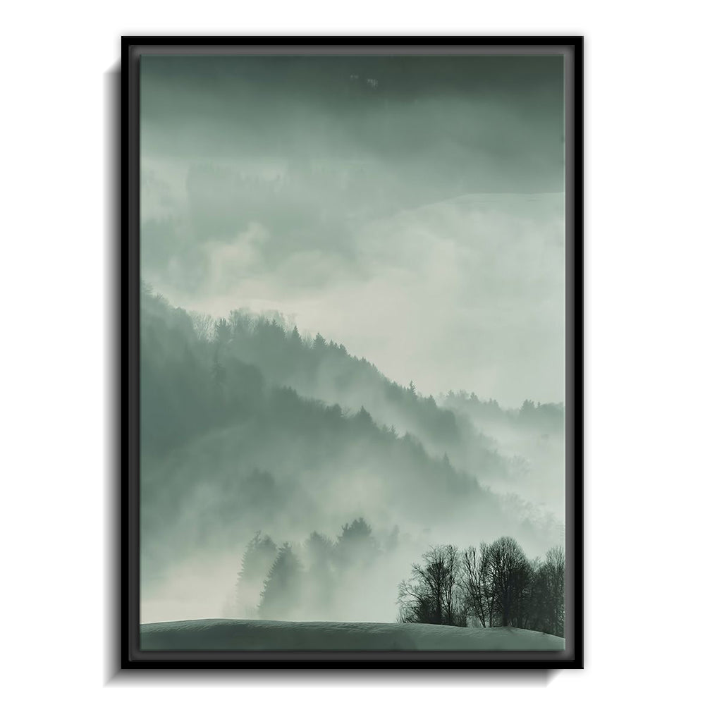 The canvas is wrapped and stretched similar to a gallery wrap and then mounted inside a wooden frame, leaving a small "gap", to create the illusion that the canvas is floating within the frame.
