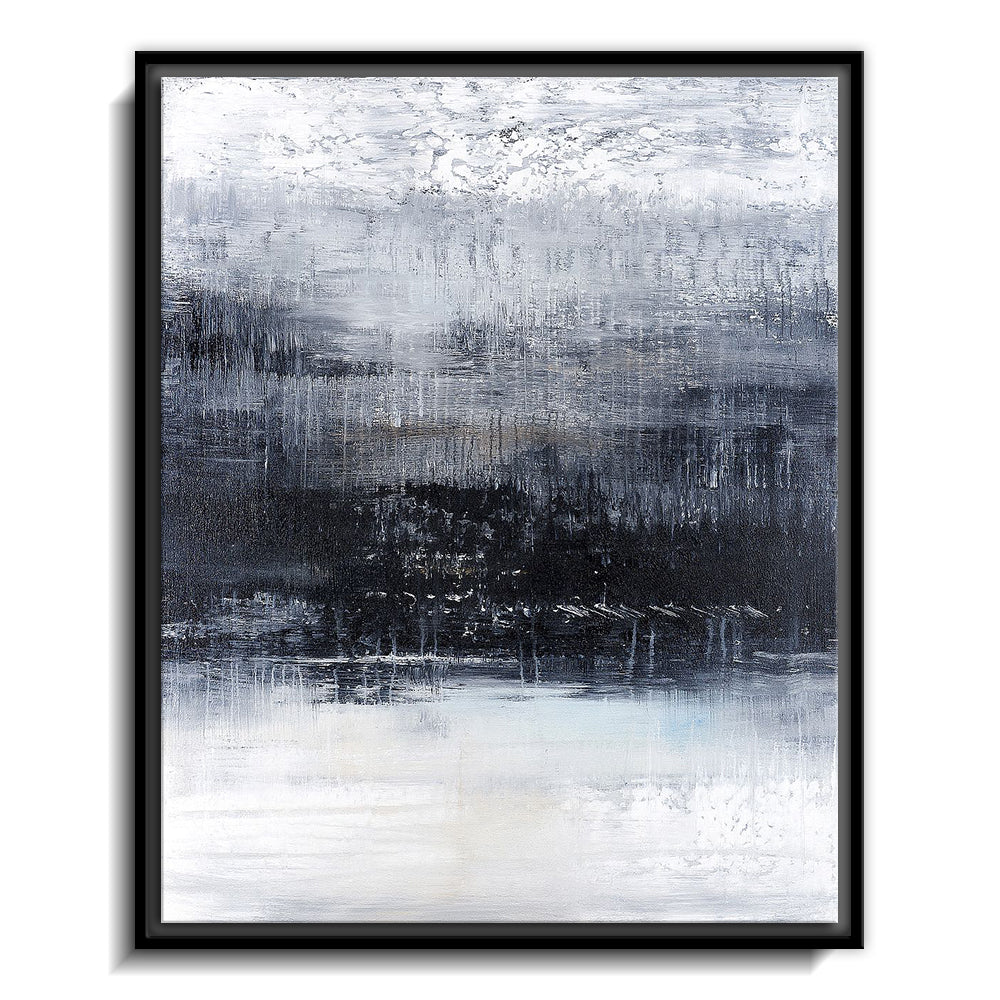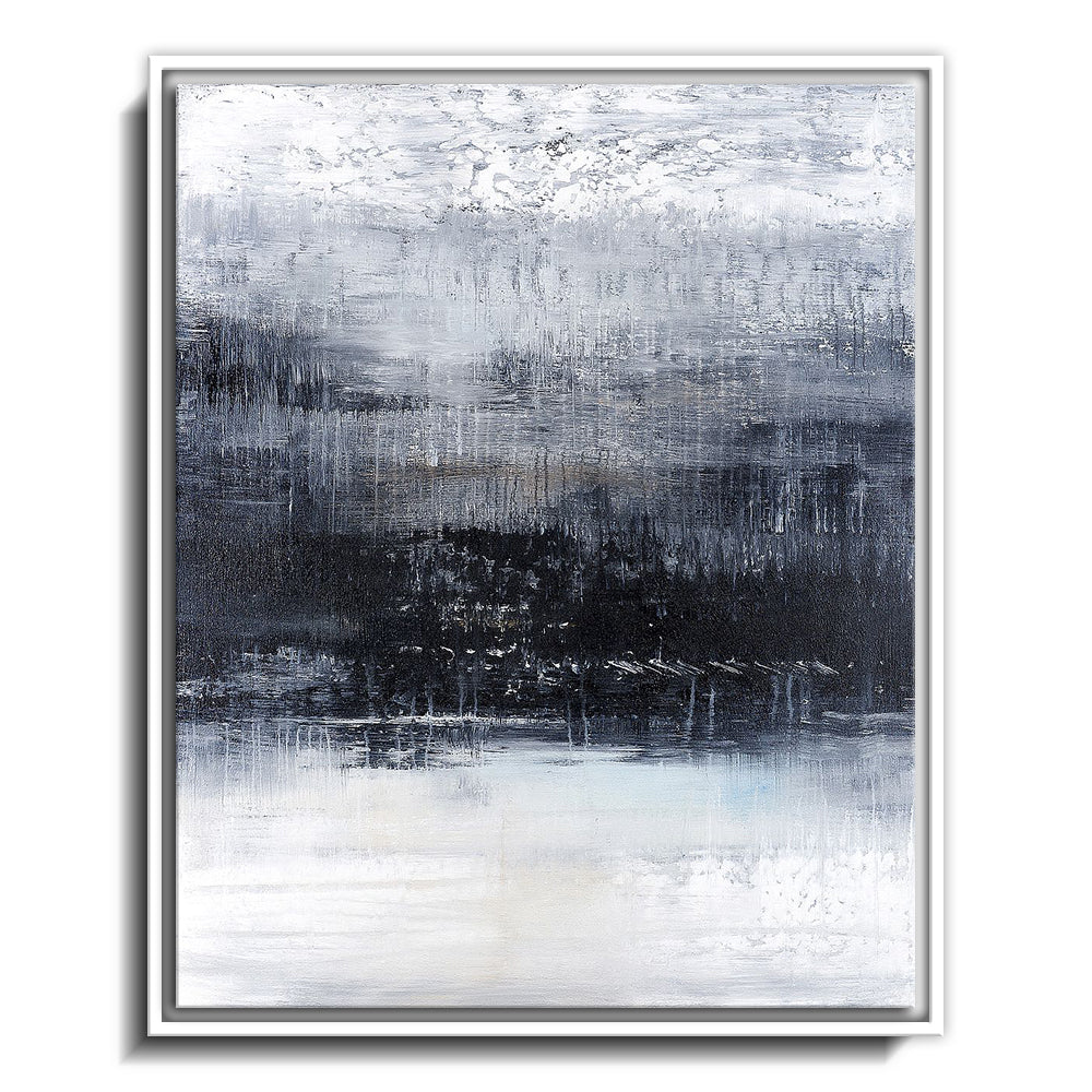The canvas is wrapped and stretched similar to a gallery wrap and then mounted inside a wooden frame, leaving a small "gap", to create the illusion that the canvas is floating within the frame.