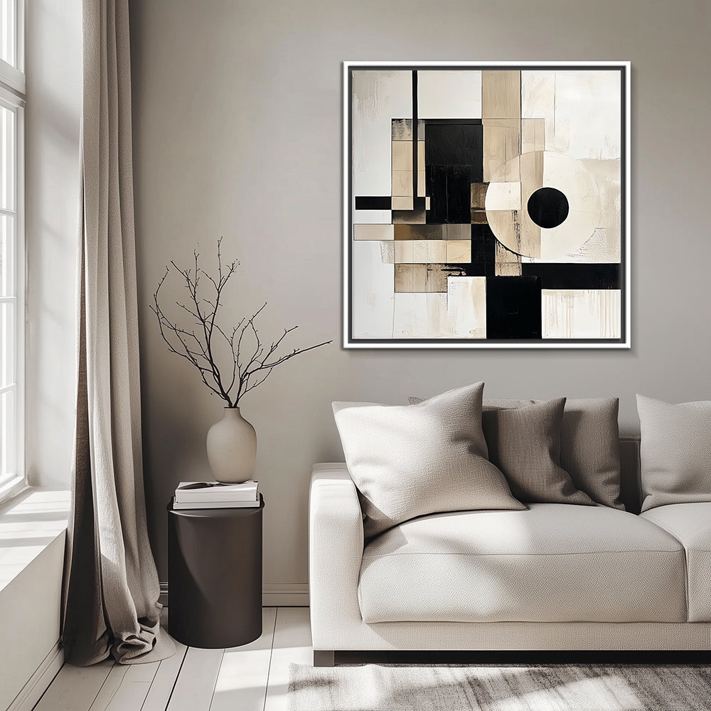 The canvas is wrapped and stretched similar to a gallery wrap and then mounted inside a wooden frame, leaving a small "gap", to create the illusion that the canvas is floating within the frame. Price: $$$