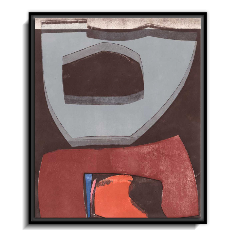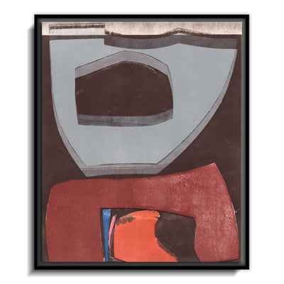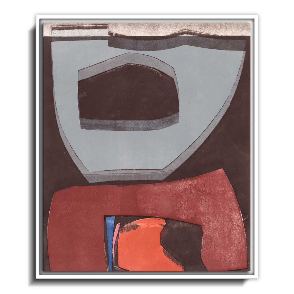 The canvas is wrapped and stretched similar to a gallery wrap and then mounted inside a wooden frame, leaving a small "gap", to create the illusion that the canvas is floating within the frame.
