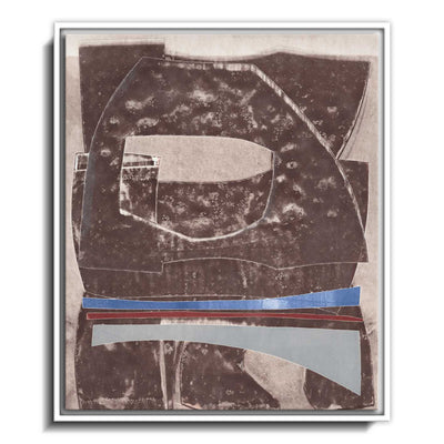 The canvas is wrapped and stretched similar to a gallery wrap and then mounted inside a wooden frame, leaving a small "gap", to create the illusion that the canvas is floating within the frame.