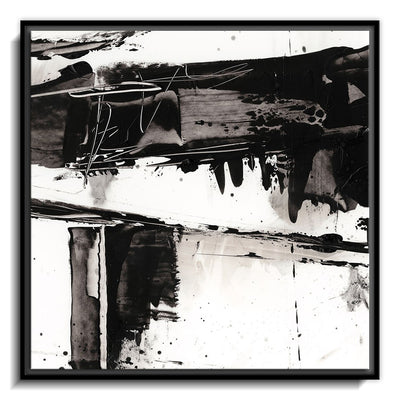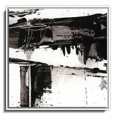 The canvas is wrapped and stretched similar to a gallery wrap and then mounted inside a wooden frame, leaving a small "gap", to create the illusion that the canvas is floating within the frame.