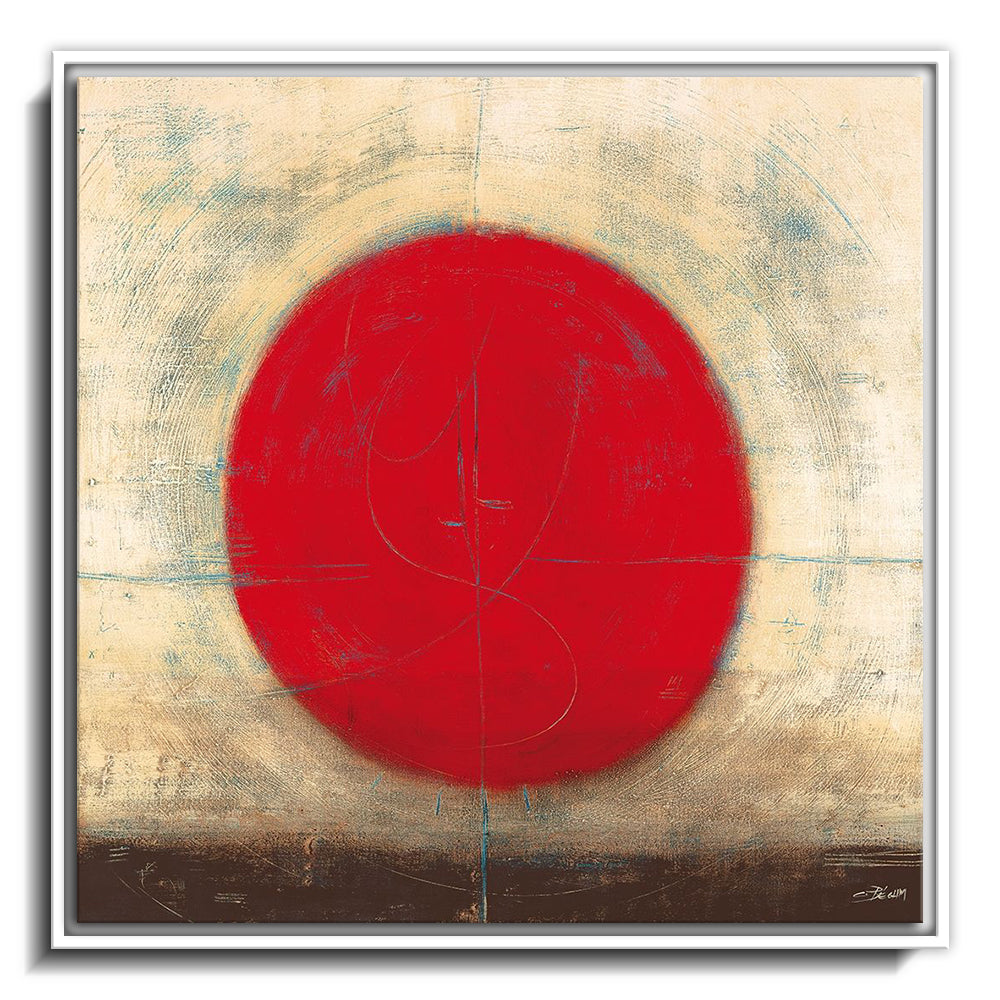 The canvas is wrapped and stretched similar to a gallery wrap and then mounted inside a wooden frame, leaving a small "gap", to create the illusion that the canvas is floating within the frame.