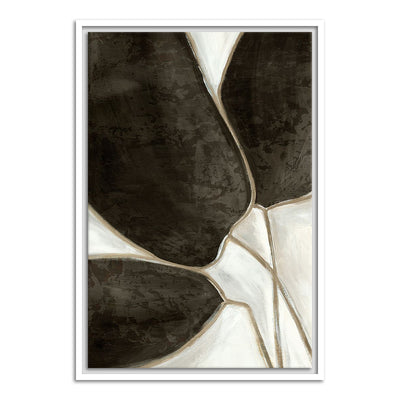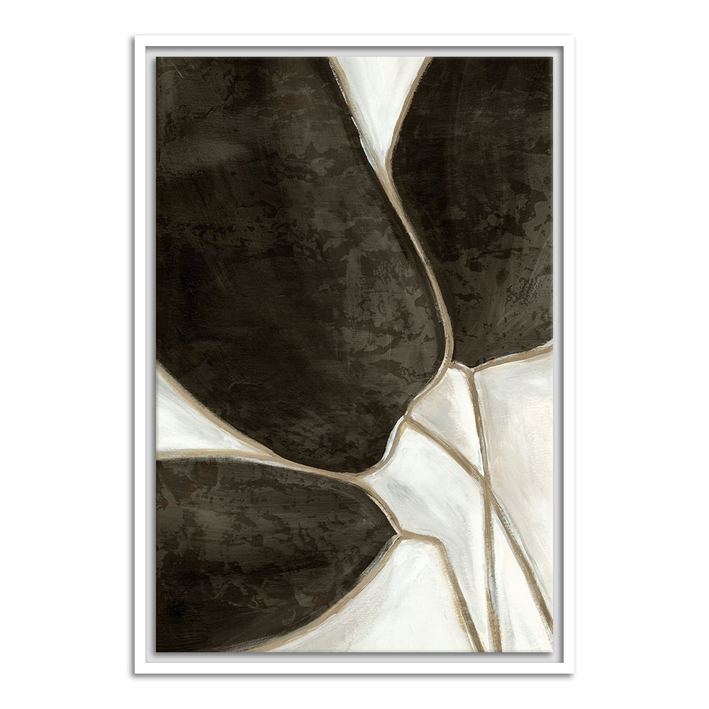 The canvas is wrapped and stretched similar to a gallery wrap and then mounted inside a wooden frame, leaving a small "gap", to create the illusion that the canvas is floating within the frame.