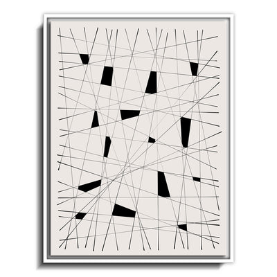The canvas is wrapped and stretched similar to a gallery wrap and then mounted inside a wooden frame, leaving a small "gap", to create the illusion that the canvas is floating within the frame.