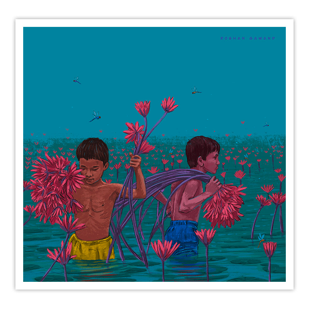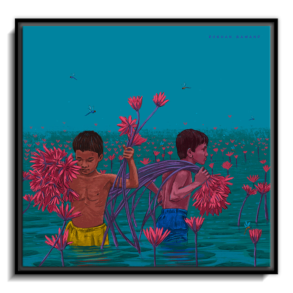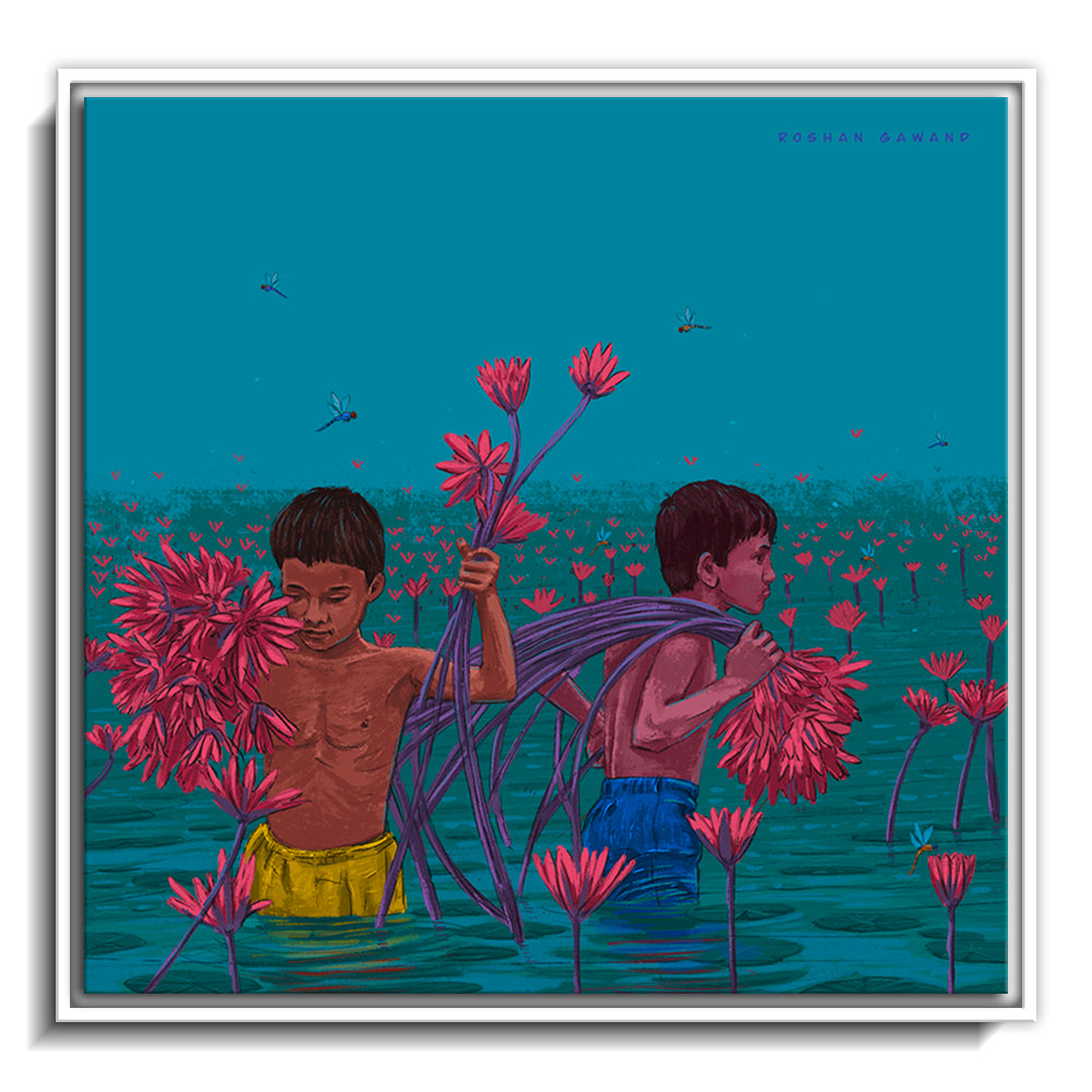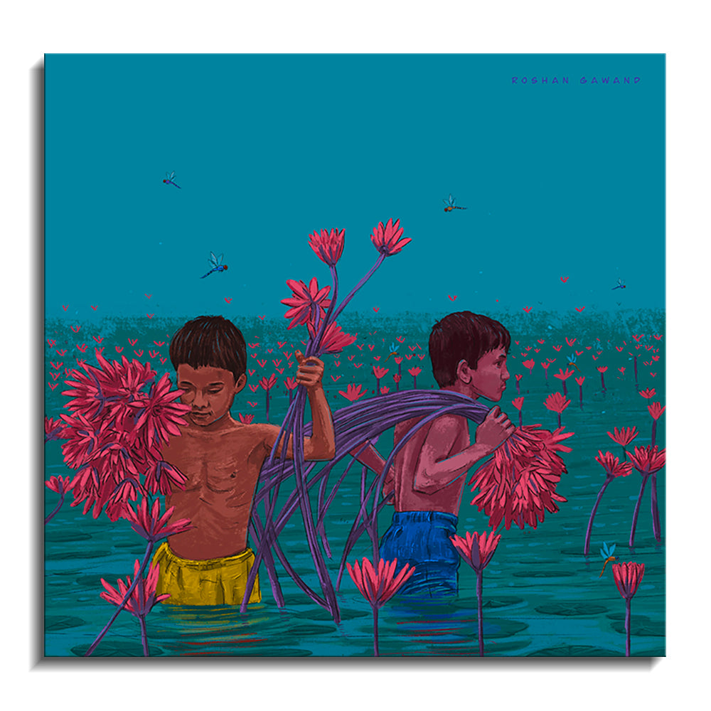 Roshan Gawand is a Mumbai based artist and a graduate of the L S Raheja School of Art. His work is deeply influenced by village life and merges Indian culture, portraits & elements in nature.
