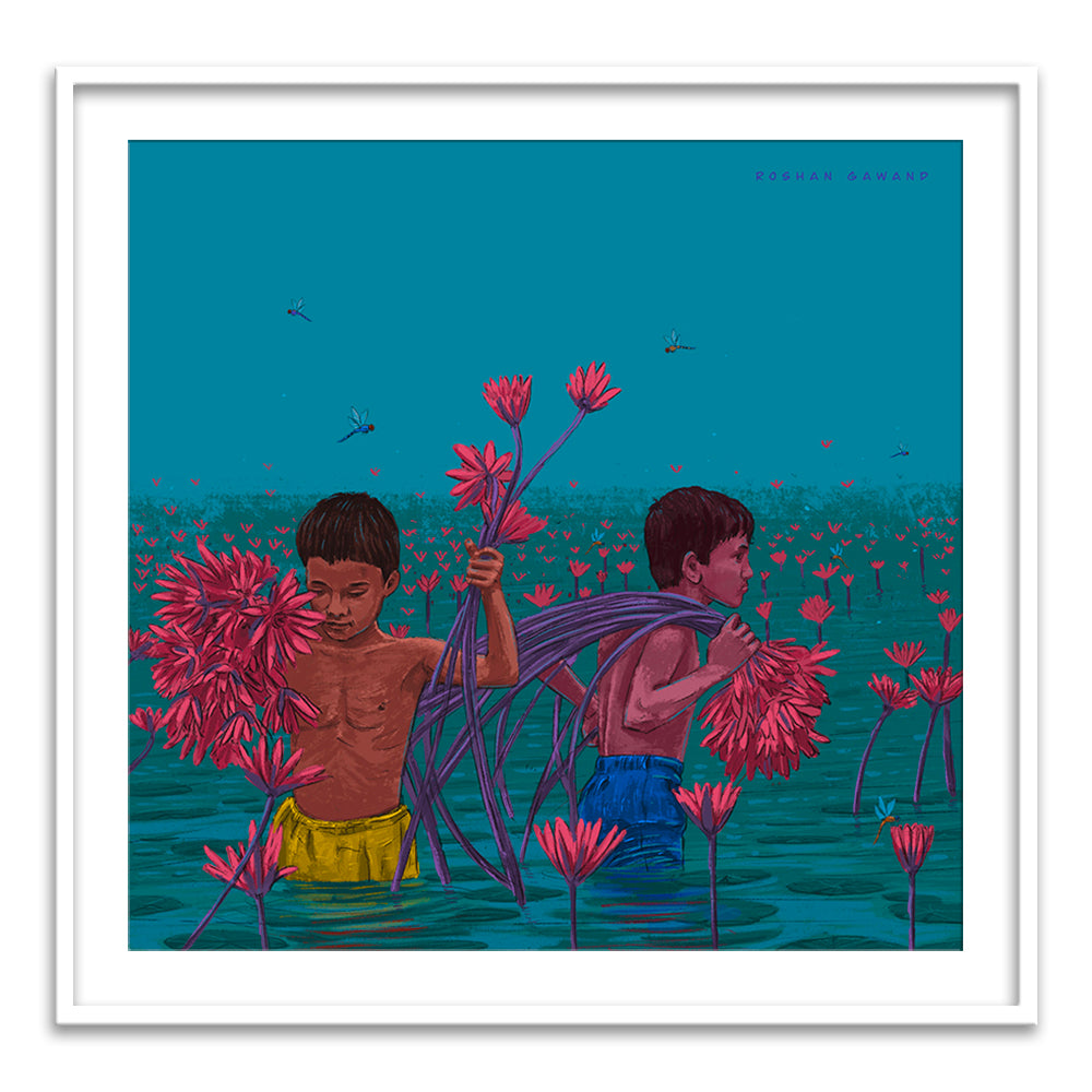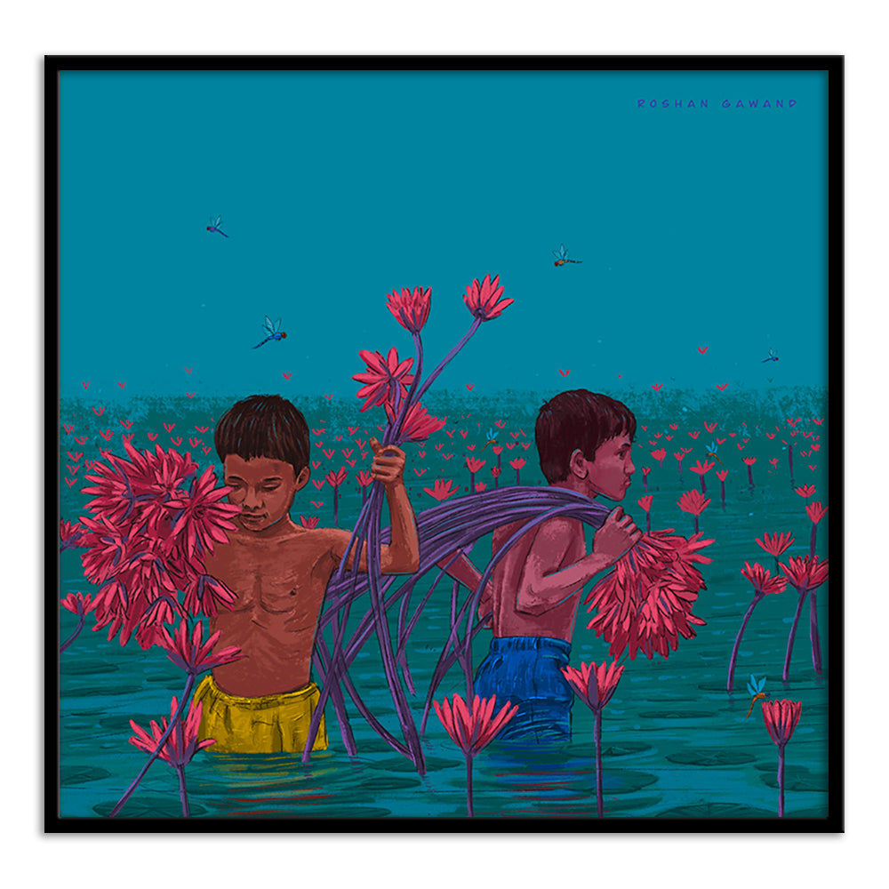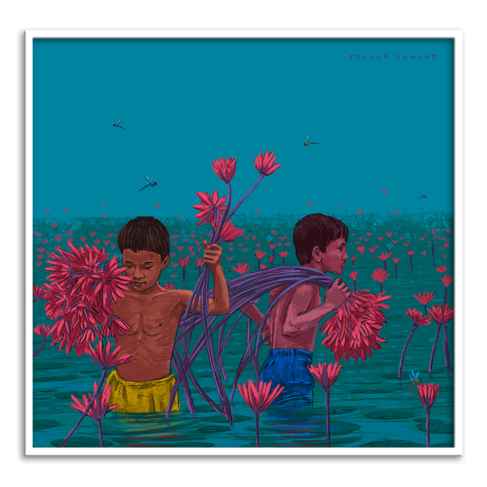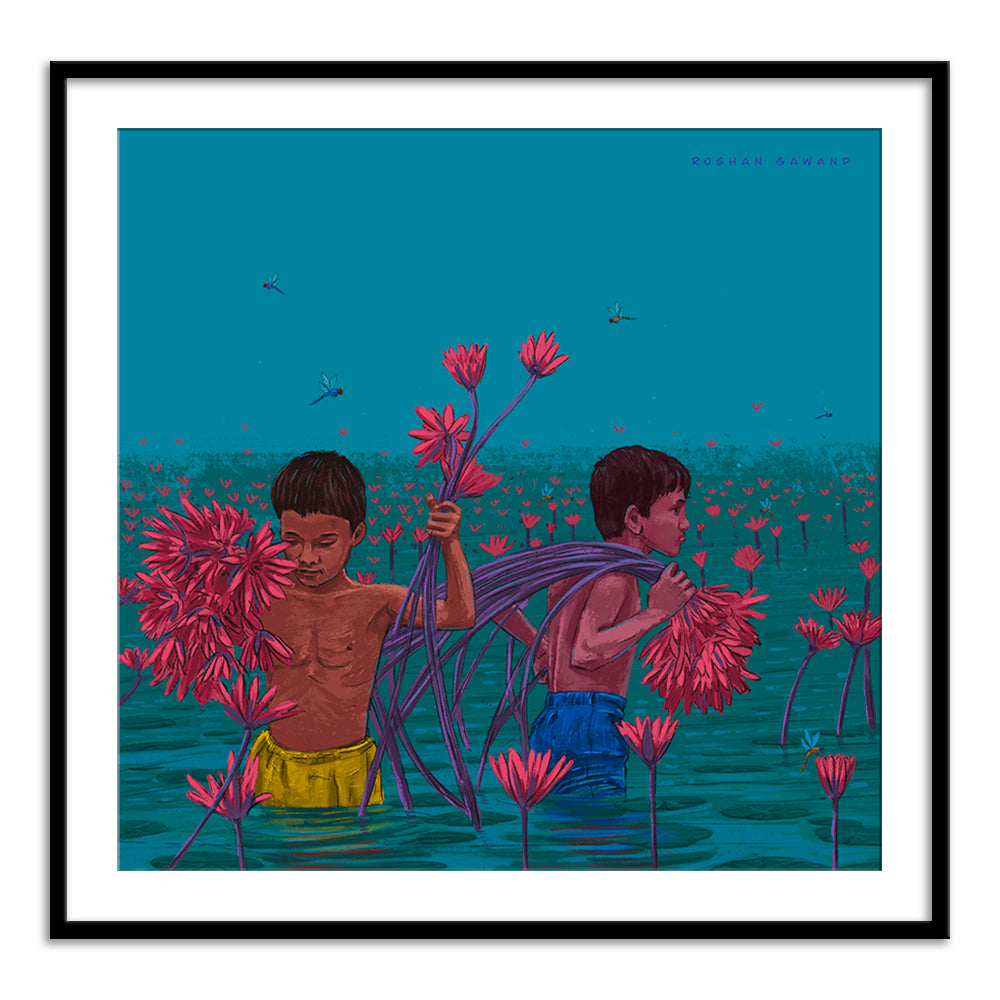 Roshan Gawand is a Mumbai based artist and a graduate of the L S Raheja School of Art. His work is deeply influenced by village life and merges Indian culture, portraits & elements in nature.