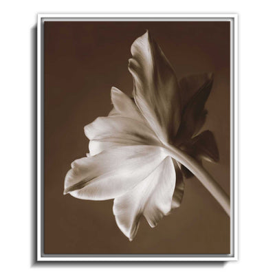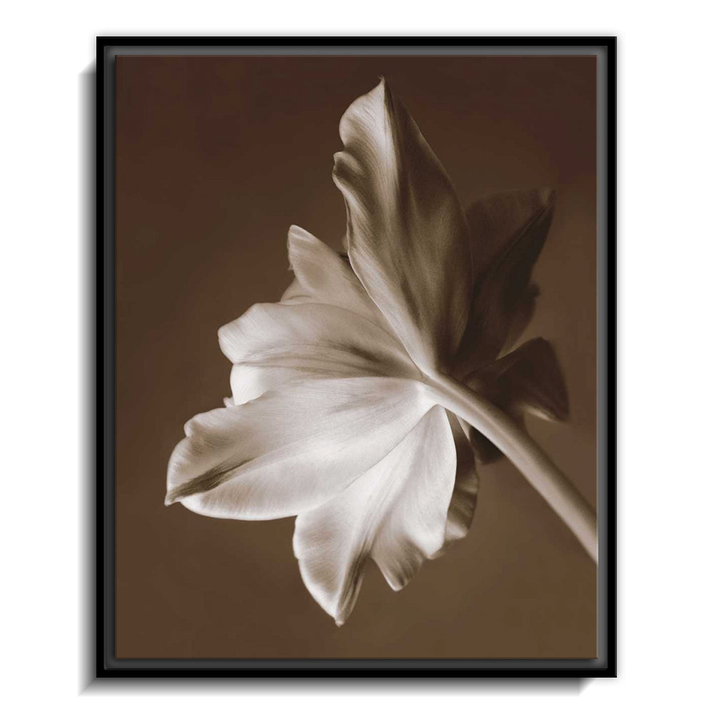 The canvas is wrapped and stretched similar to a gallery wrap and then mounted inside a wooden frame, leaving a small "gap", to create the illusion that the canvas is floating within the frame.