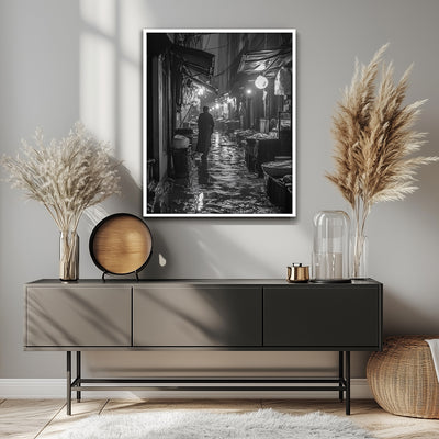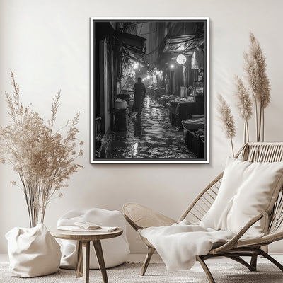 The canvas is wrapped and stretched similar to a gallery wrap and then mounted inside a wooden frame, leaving a small "gap", to create the illusion that the canvas is floating within the frame. Price: $$$