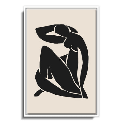 The canvas is wrapped and stretched similar to a gallery wrap and then mounted inside a wooden frame, leaving a small "gap", to create the illusion that the canvas is floating within the frame.