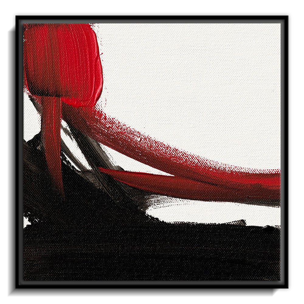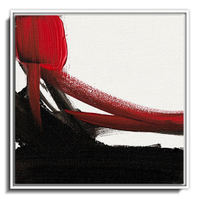 The canvas is wrapped and stretched similar to a gallery wrap and then mounted inside a wooden frame, leaving a small "gap", to create the illusion that the canvas is floating within the frame.