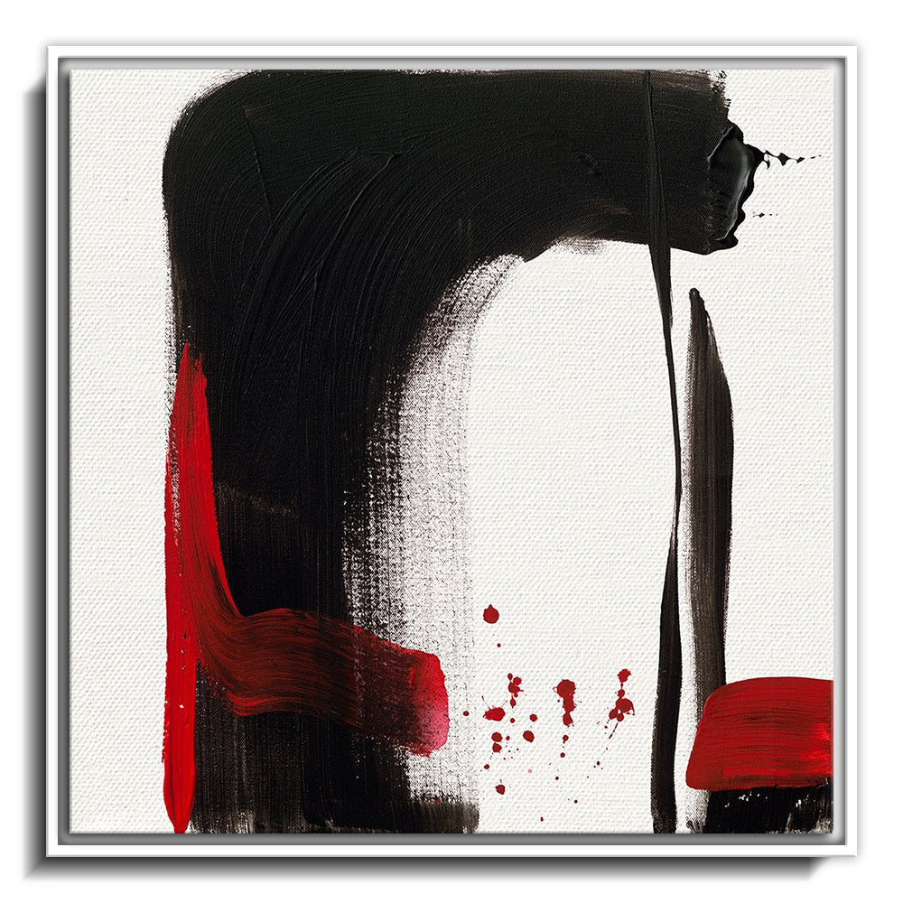 The canvas is wrapped and stretched similar to a gallery wrap and then mounted inside a wooden frame, leaving a small "gap", to create the illusion that the canvas is floating within the frame.