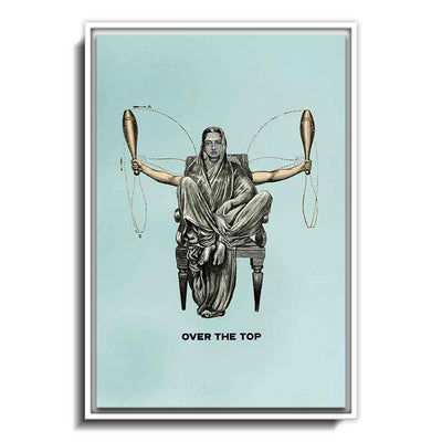 The canvas is wrapped and stretched similar to a gallery wrap and then mounted inside a wooden frame, leaving a small "gap", to create the illusion that the canvas is floating within the frame.