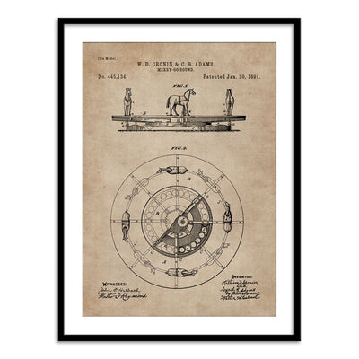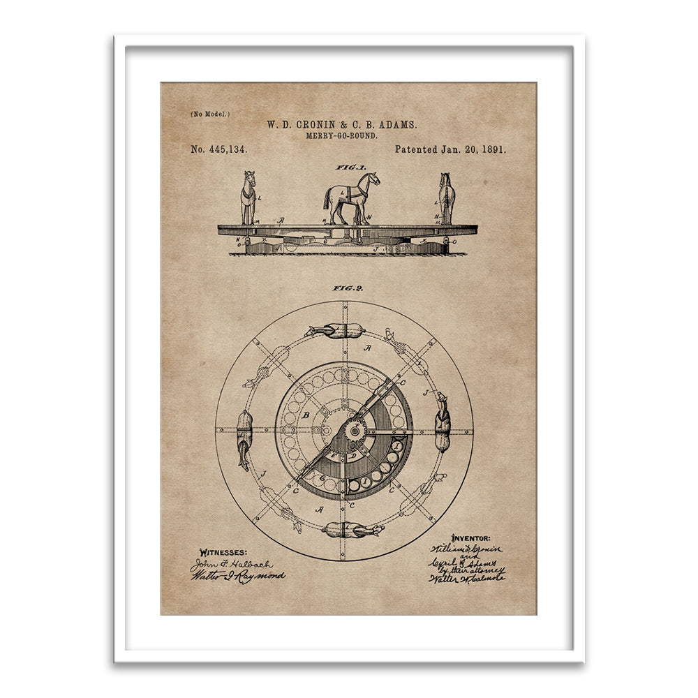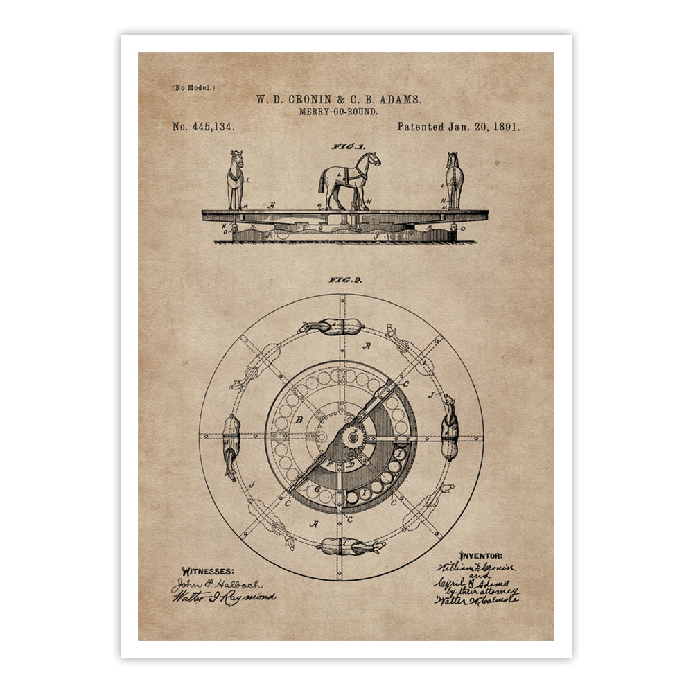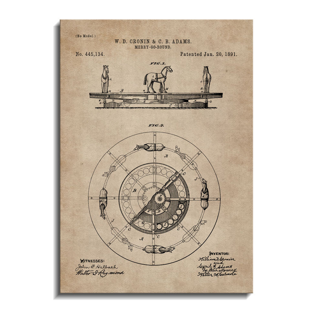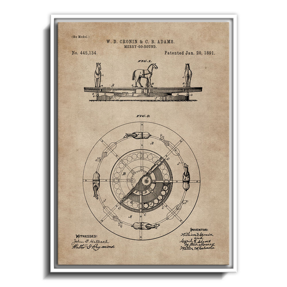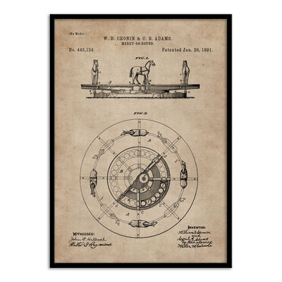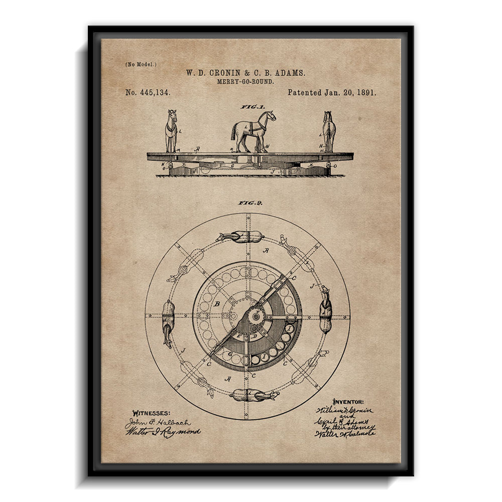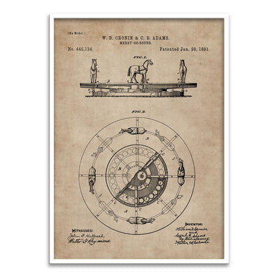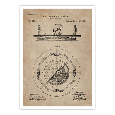 Patent Illustration of a Merry-Go-Round by W. D. Cronin & C. B. Adams