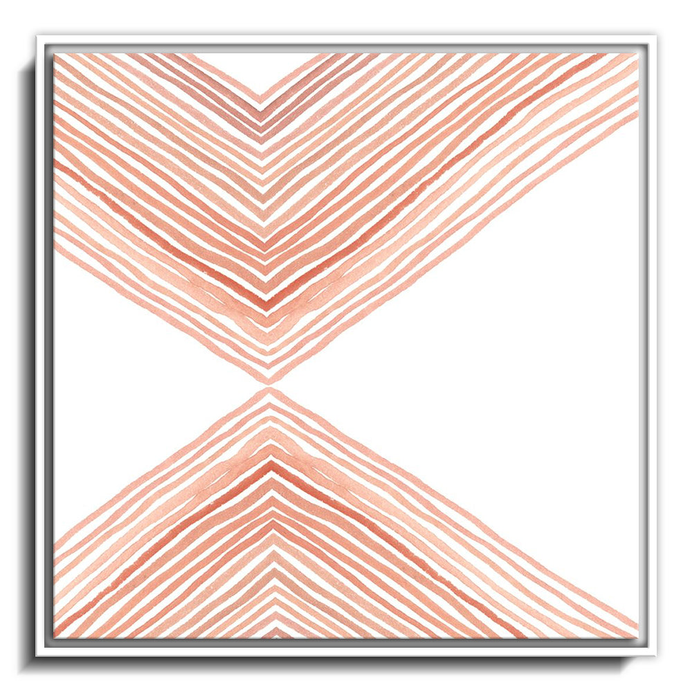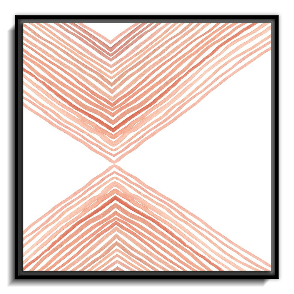 The canvas is wrapped and stretched similar to a gallery wrap and then mounted inside a wooden frame, leaving a small "gap", to create the illusion that the canvas is floating within the frame.