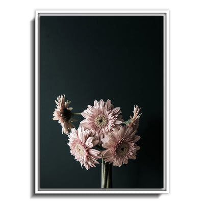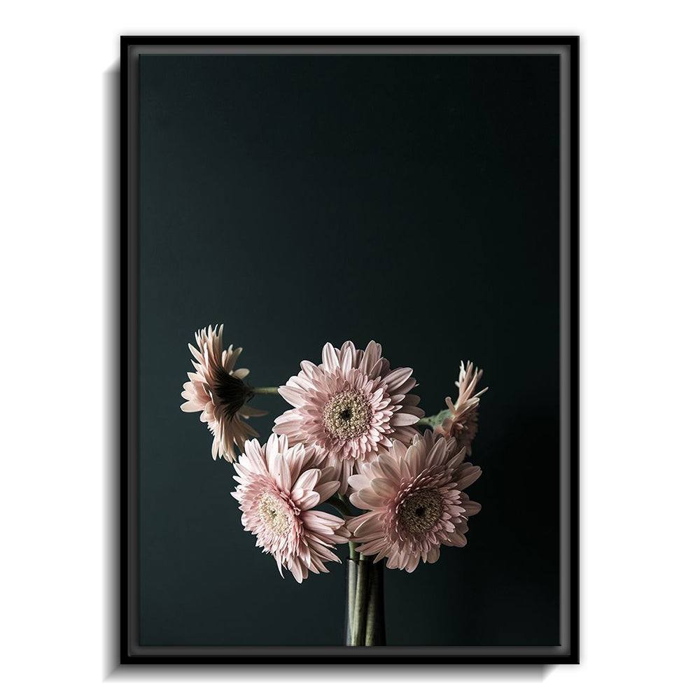 The canvas is wrapped and stretched similar to a gallery wrap and then mounted inside a wooden frame, leaving a small "gap", to create the illusion that the canvas is floating within the frame.