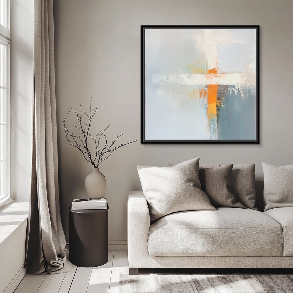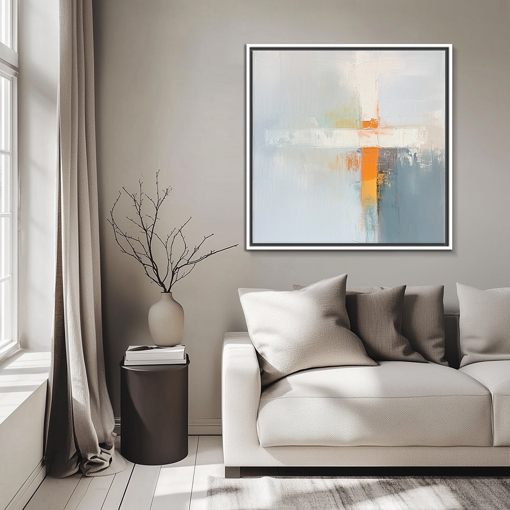 The canvas is wrapped and stretched similar to a gallery wrap and then mounted inside a wooden frame, leaving a small "gap", to create the illusion that the canvas is floating within the frame. Price: $$$