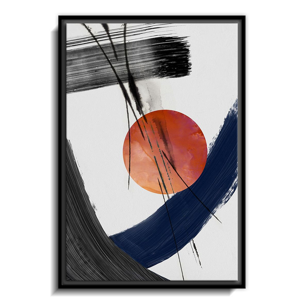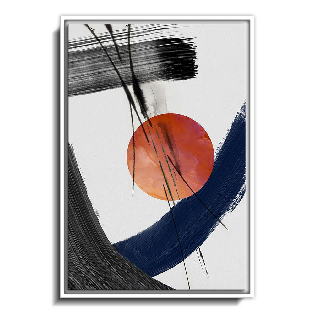 The canvas is wrapped and stretched similar to a gallery wrap and then mounted inside a wooden frame, leaving a small "gap", to create the illusion that the canvas is floating within the frame.