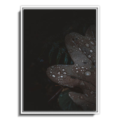 The canvas is wrapped and stretched similar to a gallery wrap and then mounted inside a wooden frame, leaving a small "gap", to create the illusion that the canvas is floating within the frame.