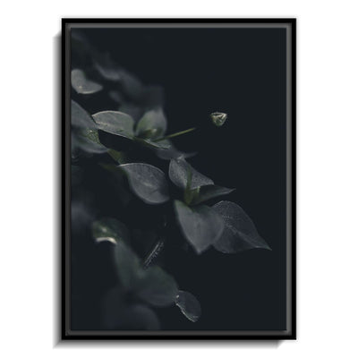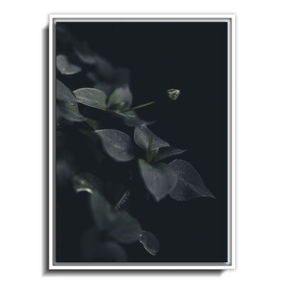 The canvas is wrapped and stretched similar to a gallery wrap and then mounted inside a wooden frame, leaving a small "gap", to create the illusion that the canvas is floating within the frame.