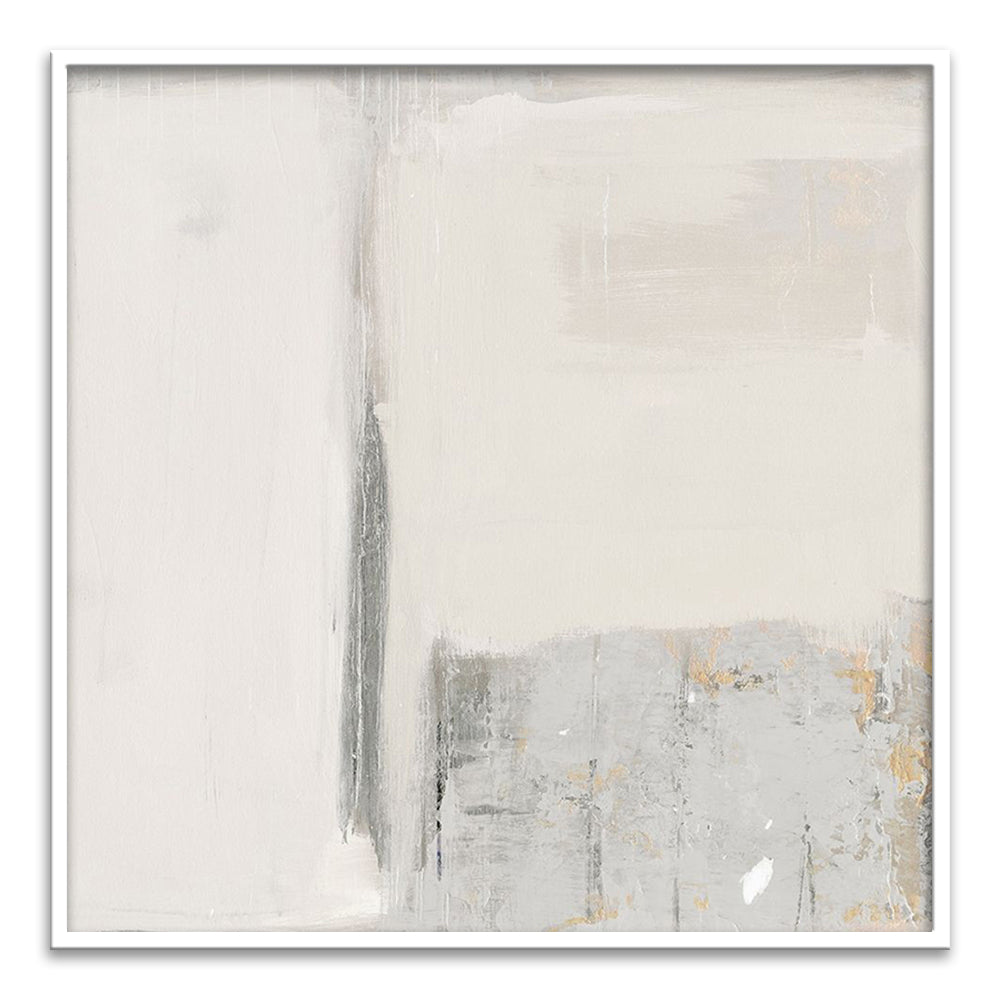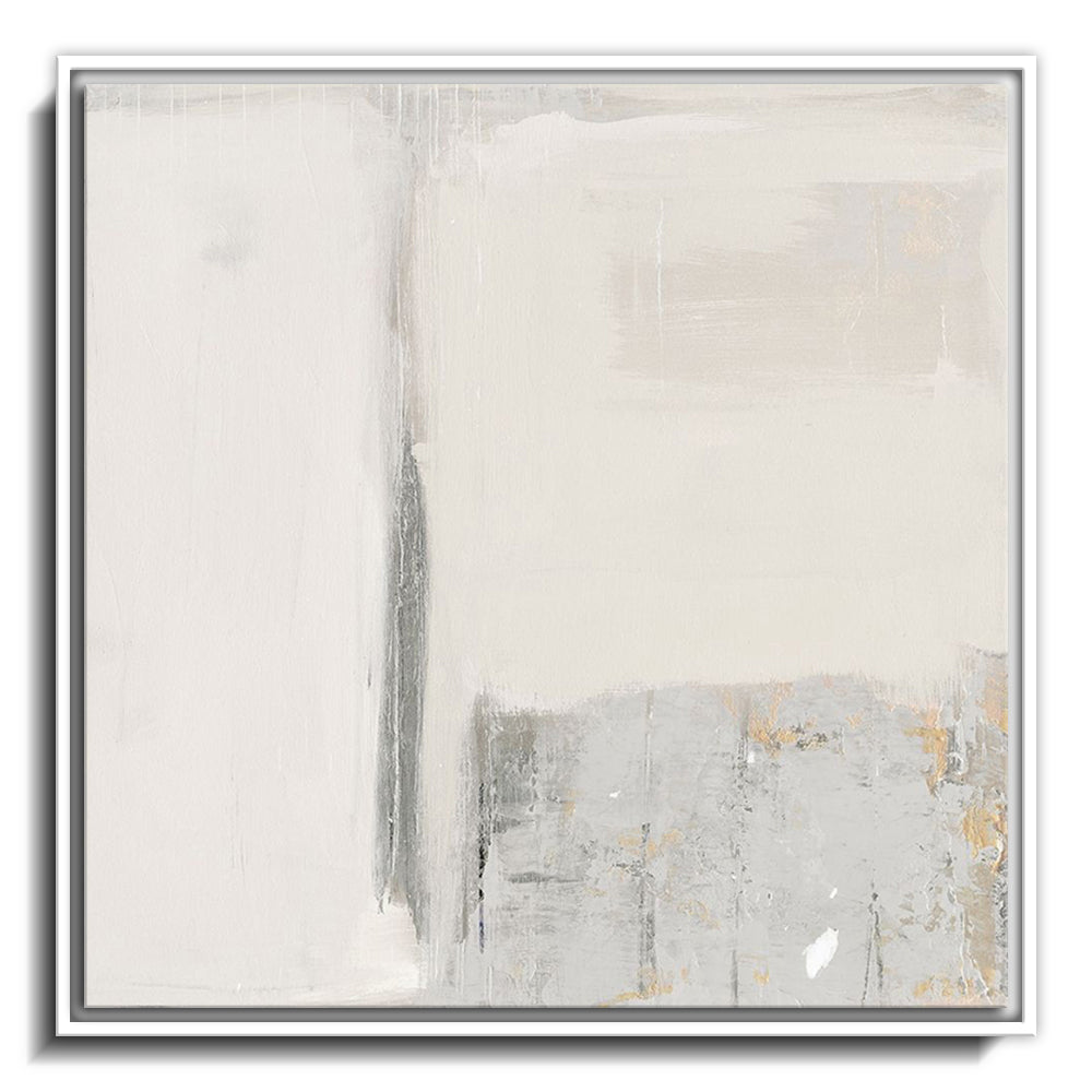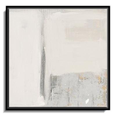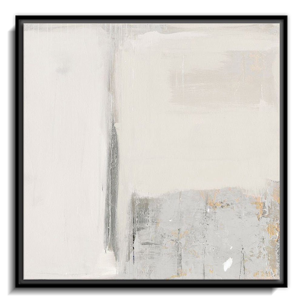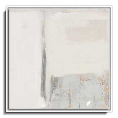 The canvas is wrapped and stretched similar to a gallery wrap and then mounted inside a wooden frame, leaving a small "gap", to create the illusion that the canvas is floating within the frame.