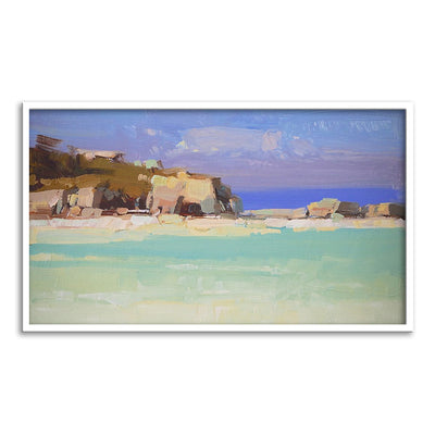 A high quality PVC frame with an off-white mount. Thickness of mount ranges from 1 - 4 inches depending on size of the artwork.