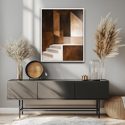 The canvas is wrapped and stretched similar to a gallery wrap and then mounted inside a wooden frame, leaving a small "gap", to create the illusion that the canvas is floating within the frame. Price: $$$