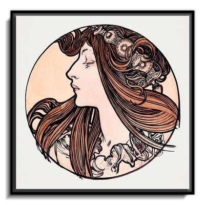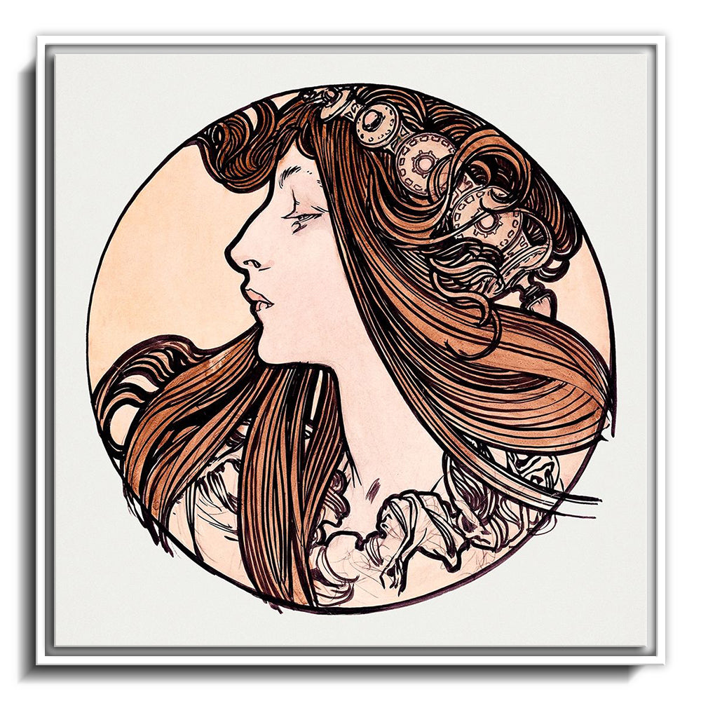 The canvas is wrapped and stretched similar to a gallery wrap and then mounted inside a wooden frame, leaving a small "gap", to create the illusion that the canvas is floating within the frame.