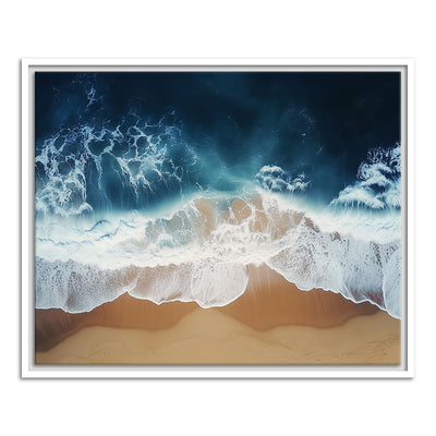 The canvas is wrapped and stretched similar to a gallery wrap and then mounted inside a wooden frame, leaving a small "gap", to create the illusion that the canvas is floating within the frame. Price: $$$