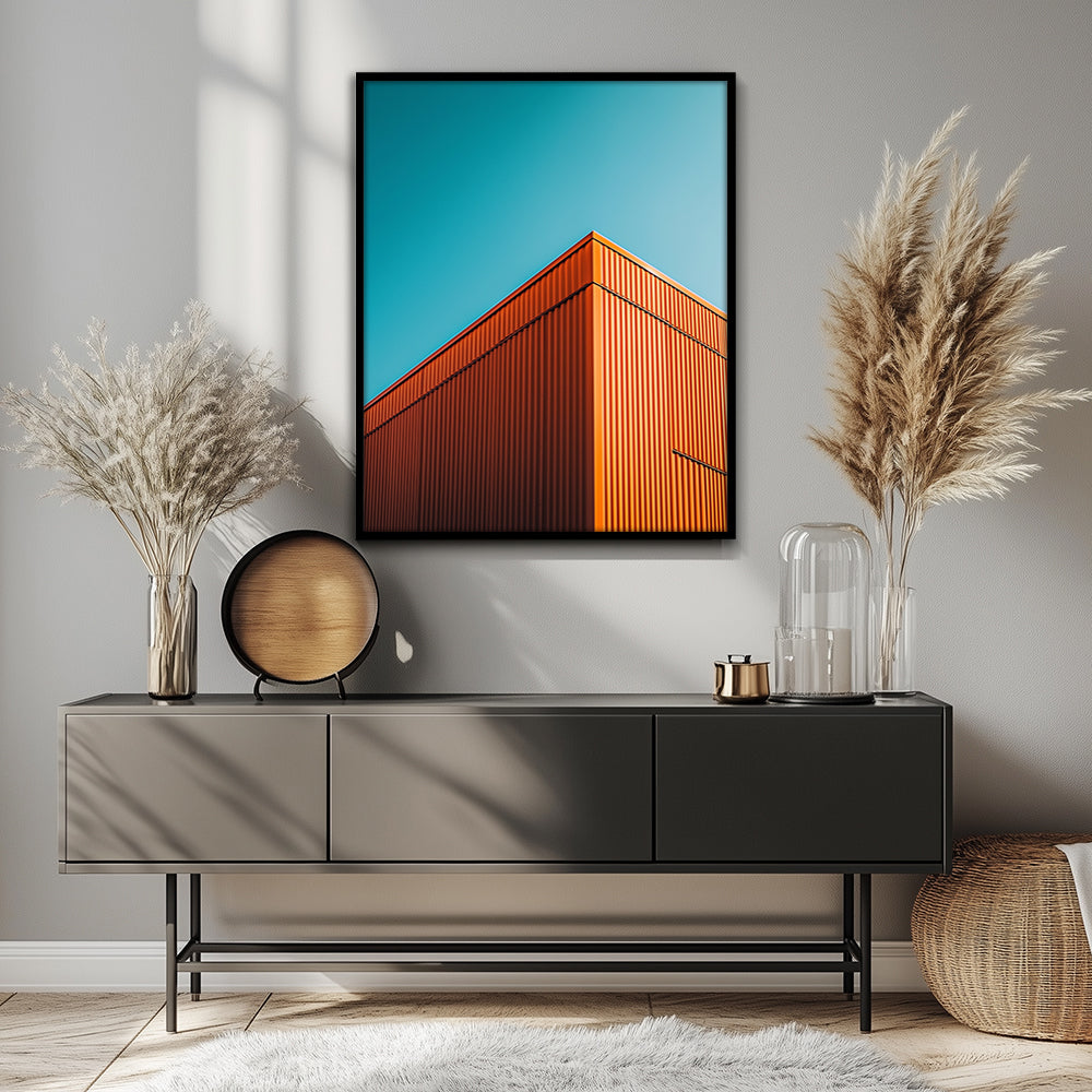 A high quality PVC frame with a front thickness of 0.5 inch and a depth of 1 inch. The artwork is protected by a layer of clear glass or acrylic. Price: $