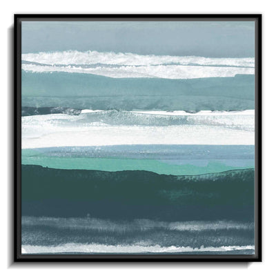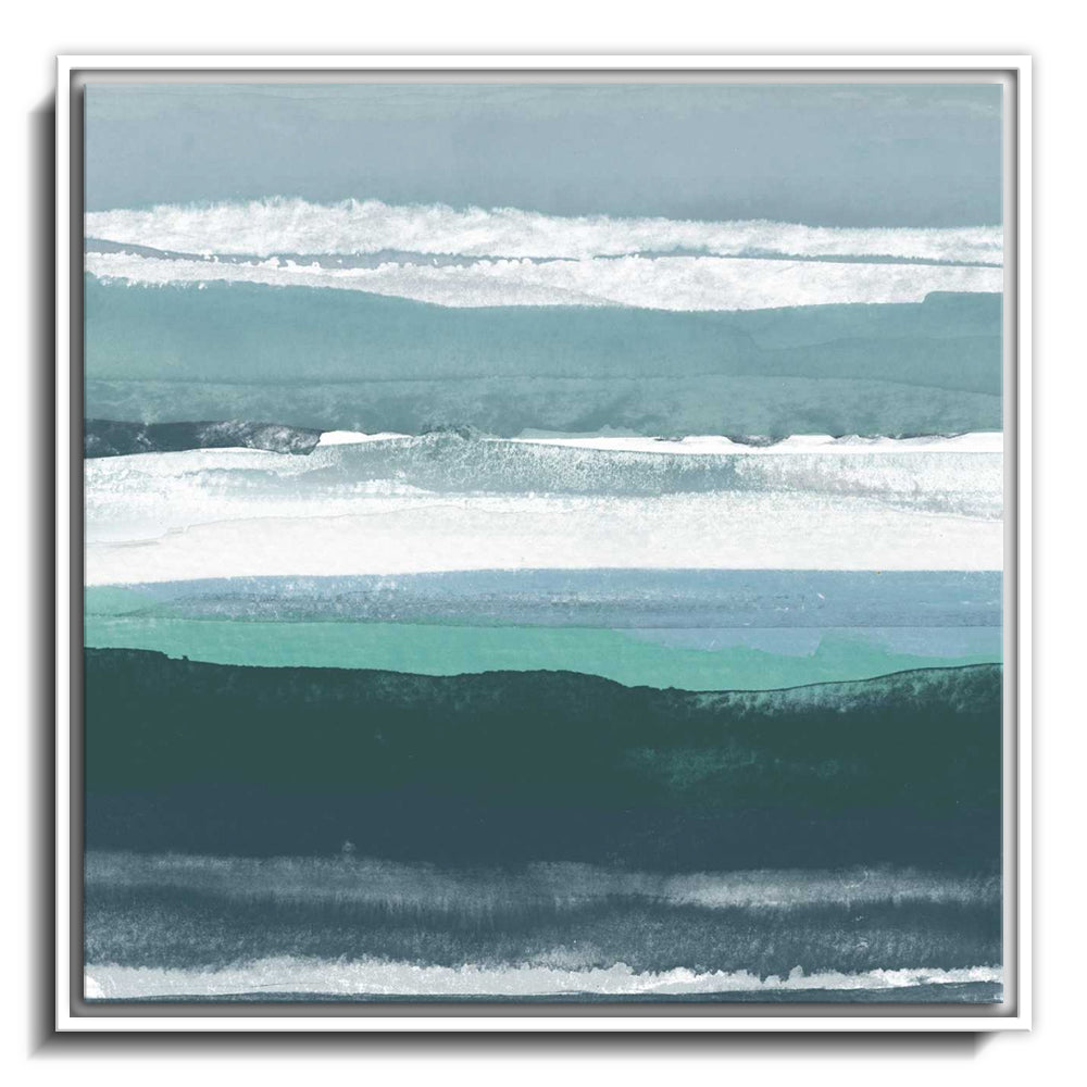 The canvas is wrapped and stretched similar to a gallery wrap and then mounted inside a wooden frame, leaving a small "gap", to create the illusion that the canvas is floating within the frame.