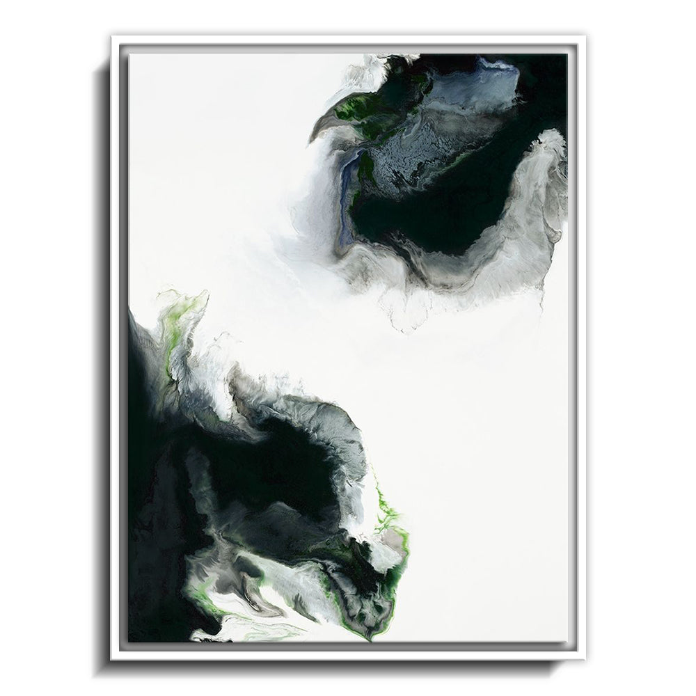 The canvas is wrapped and stretched similar to a gallery wrap and then mounted inside a wooden frame, leaving a small "gap", to create the illusion that the canvas is floating within the frame.
